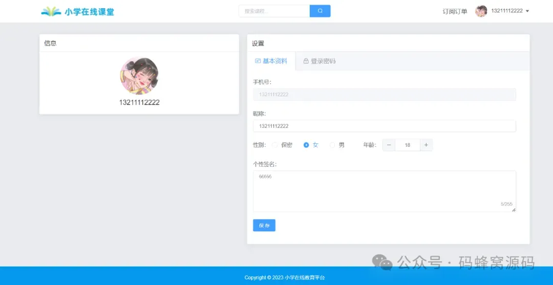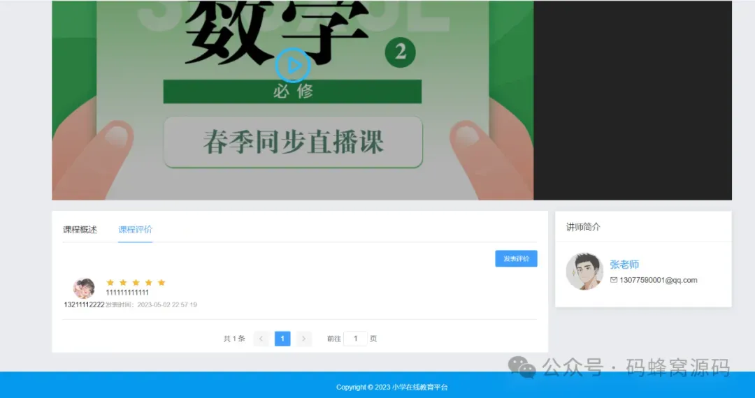 该在线教育学习平台基于B/S架构,后端采用SpringBoot架构,前端采用Vue+ElementUI技术,并结合MySQL数据库。该系统分为系统管理员、教师、学生用户三种角色: