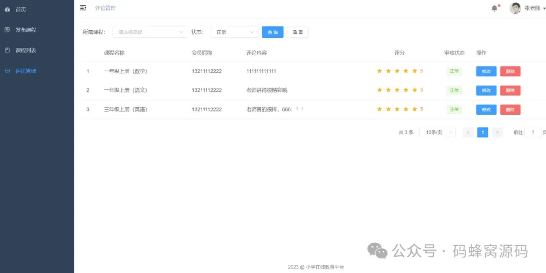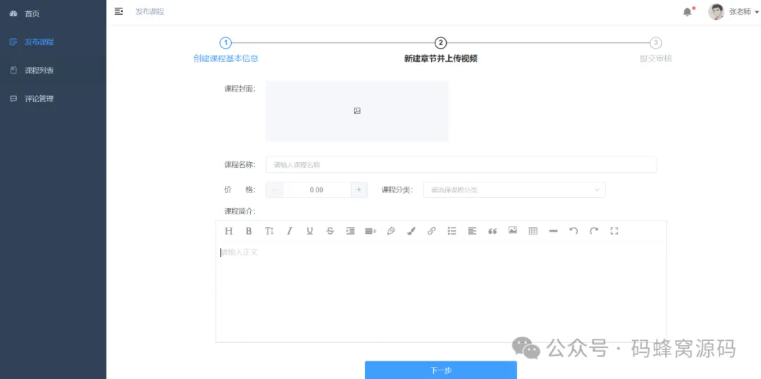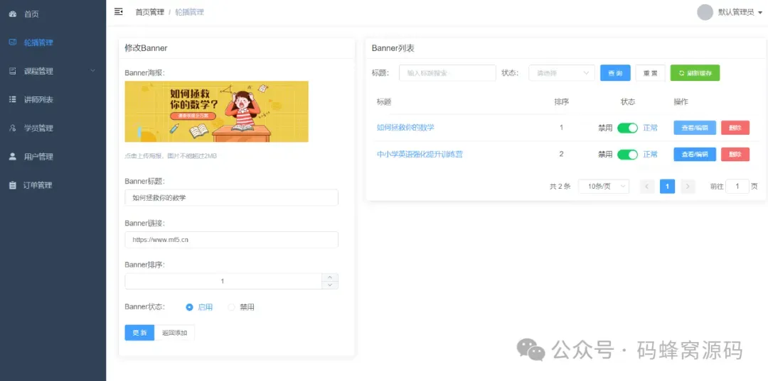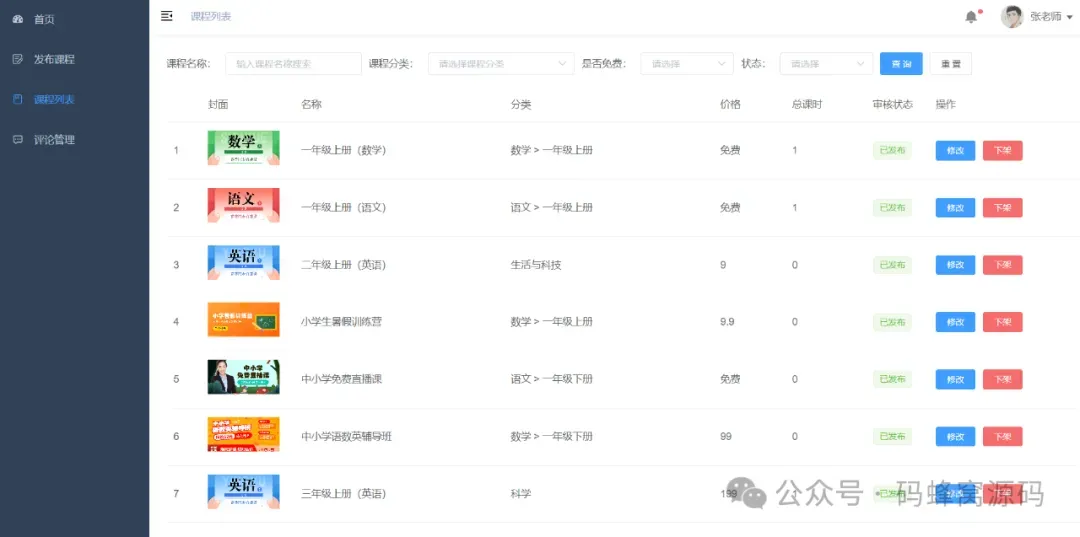3)课程管理和上下架