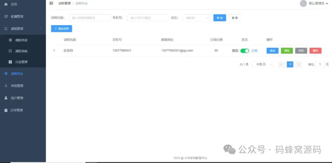 5)讲师信息管理