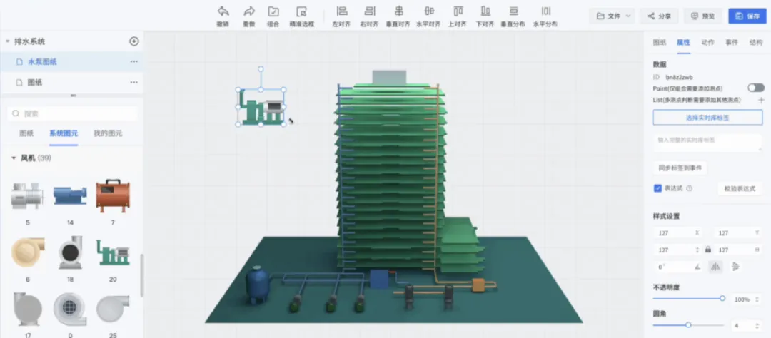 基于组件构建高效组态,自由定制、灵活扩展,顷刻间完成精美界面设计 丰富的图元
