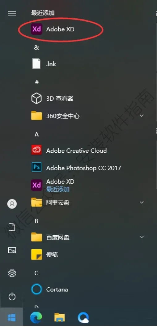 7.软件快捷方式图标不会自动出现在桌面,需要自己找出来。在电脑开始菜单,找到XD图标,左键按住,拉到桌面即可