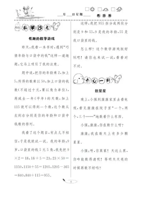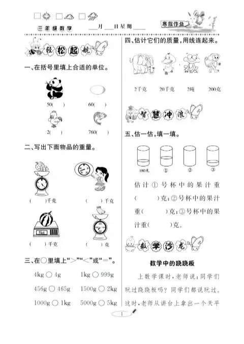 寒假作业·快乐假期三年级数学青岛版.pdf| 高清小学资料免费下载