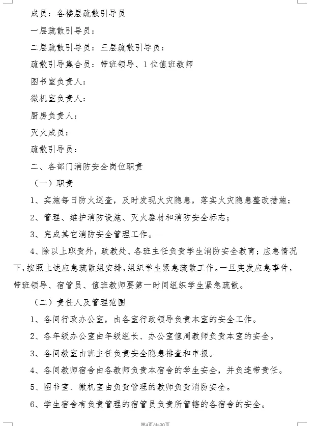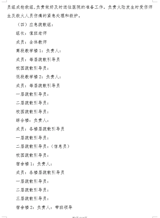 疏散组:每层楼有疏散引导员,负责组织学生有序撤离
