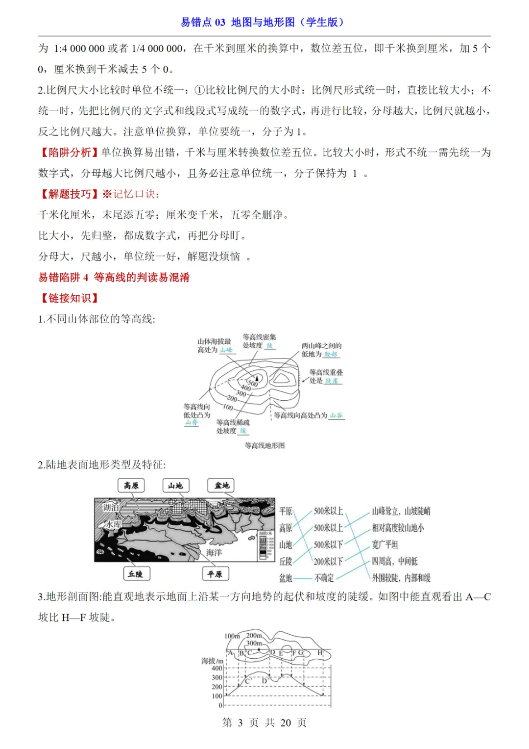 【免费下载】会考专项地理易错点03 地图与地形图 电子版