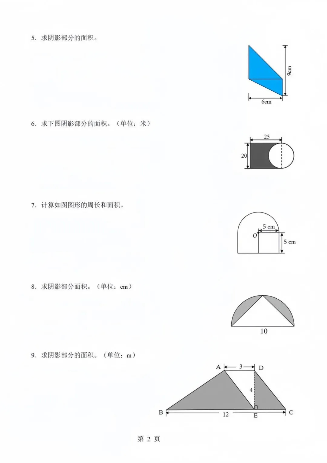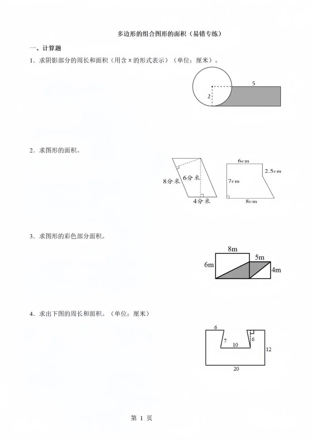 【免费下载】六年级(下)数学 多边形组合面积练习,PDF电子版,可打印