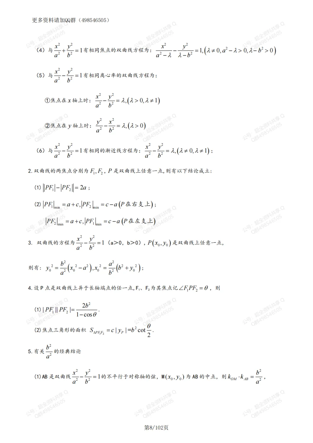 高中数学圆锥曲线突破大全(pdf分享) 【最新试卷】 2024北京东城高三【一模】全科试题及答案(pdf分享) 2024北京西城高三【一模】全科试题及答案(pdf分享) 2024北京海淀高三【一模】全科试题及答案(pdf分享) 2025北京海淀区高一(上)期末卷合集及答案(pdf分享) 2025北京海淀区高二(上)期末卷合集及答案(pdf分享) 2025北京海淀区高三(上)期末卷合集及答案(pdf分享) 2025北京东城区高一(上)期末卷合集及答案(pdf分享) 2025北京东城区高二(上)期末卷合集及答案(pdf分享) 2025北京东城区高三(上)期末卷合集及答案(pdf分享) 2025北京朝阳区高一(上)期末卷合集及答案(pdf分享) 2025北京朝阳区高二(上)期末卷合集及答案(pdf分享) 2025北京朝阳区高三(上)期末卷合集及答案(pdf分享) 2025届高三八省八校联考(全九科)试题及答案(pdf分享) 看文末有获取打印版方式 (完整版102页,部分展示) 上文和下面资料在QQ群498546505下载 【高中数学知识总结】 1.人教版高中数学必修1知识点(pdf分享) 2.人教版高中数学必修2知识点(pdf分享) 3.人教版高中数学必修3知识点(pdf分享) 4.人教版高中数学必修4知识点(pdf分享) 5.人教版高中数学必修5知识点(pdf分享) 6.人教版高中数学选修1-1知识点(pdf分享) 7.高中数学选修2-1知识点汇编(pdf分享) 8.人教版高中数学选修2-2知识点(pdf分享) 9.人教版高中数学选修2-3知识点(pdf分享) 10.人教版高中数学选修4-4知识点(pdf分享) 11.人教版高中数学选修4-5知识点(pdf分享) 12.人教版高中数学选修1-2知识点(pdf分享) 13.高中数学专题-坐标系与参数方程(经典例题)(pdf分享) 14.高中数学知识点归纳汇总(共100页)(pdf分享) 15.2023年高中数学思维导图、公式考点总结(pdf分享) 16.初高中数学衔接知识点讲解以及练习题分析(pdf分享) 17.高中数学常用公式及常用结论(pdf分享) 18.高考数学考前必看知识点(pdf分享) 19.高考数学复习高中数学必修二思维导图(人教A版2019)(pdf分享) 20.高中数学知识易错点梳理(pdf分享) 21.高中数学专题《不等式》知识点+解题技巧+习题(pdf分享) 22.高中数学专题《导数》知识网络+高考考点+知识要点+经典例题(pdf分享) 23.高中数学必修5常考题型与知识点总结(pdf分享) 24.高中数学人教A版(2019)必修第一册知识点总结(pdf分享) 25.高中数学人教A版(2019)必修第二册知识点总结(pdf分享) 26.高中数学专题《立体几何》知识点+解题技巧+经典例题(pdf分享) 27.高中数学专题《函数》知识点+解题技巧+经典例题(pdf分享) 28.高中数学必修+选修全部知识点精华归纳总结(新课标人教A版)(pdf分享) 29.高中数学知识点与公式大全(旧版人教A版)(pdf分享) 30.高中数学专题《平面向量》知识点+重要定理公式+经典题(pdf分享) 31.高中数学专题《三角函数》知识点+命题趋向+考点透析+例题解析(pdf分享) 32.高中数学专题《数列》知识点+考点+例题解析(pdf分享) 33.高中数学专题《算法与程序框图》知识点+例题解析(pdf分享) 34.高中数学专题《推理与证明》知识点+例题解析(pdf分享) 35.高考数学100个高频考点(pdf分享) 36.高中数学常用公式及结论(完整版)(pdf分享) 37.2021年高考数学真题汇编(pdf分享) 38.高中数学必修1-5知识点总结(学霸笔记)(pdf分享) 39.高中数学导数压轴题专题训练(pdf分享) 40.高中数学笔记总结【高一至高三】(pdf分享) 41.高中数学专题-排列组合21种模型(pdf分享) 42.高中数学人教A版(2019)必修第一册知识点总结(pdf分享) 43.高考数学圆锥曲线40道大题特训(含答案)(pdf分享) 44.初高中数学衔接知识点讲解以及练习题分析(pdf分享) 45.高中数学人教A版(2019)选择性必修第一册知识点总结(pdf分享) 46.高中数学《椭圆、双曲线、抛物线》知识点(pdf分享) 47.高中数学人教A版(2019)选择性必修第二册知识点总结(pdf分享) 48.高中数学人教A版(2019)选择性必修第三册知识点总结(pdf分享) 49.高考数学九大核心考点与知识点总结(pdf分享) 50.高中数学全国卷新课标知识点汇总(pdf分享) 51.高一数学上下册知识点总结(pdf分享) 52.高中数学概念公式大全(pdf分享) 53.高考数学椭圆常用二级结论(pdf分享) 54.高考数学知识点一本全(pdf分享) 55.高一数学知识点汇总讲解大全(pdf分享) 56.高一数学必修一、必修二知识点整合(pdf分享) 57.新课标高中数学必修一至必修五知识点总结(pdf分享) 58.高中数学《函数》大题练习题(含答案解析)(pdf分享) 59.高中数学解题思想方法全部内容(pdf分享) 60.高中数学的数形结合思想方法-全(讲解+例题+巩固+测试)(pdf分享) 61.高考数学《圆锥曲线》40道大题特训(含答案)(pdf分享) 62.高考数学《导数》针对训练(含答案)(pdf分享) 63.高中数学学科体系思维导图(pdf分享) 64.高中数学总复习资料汇总(必修1-5)(pdf分享) 65.高中数学全部知识点整理-超经典(pdf分享) 66.高中数学127个常用快速解题公式结论(pdf分享) 67.(新教材)高中人教A版数学必修第一册知识点(pdf分享) 68.(新教材)高中人教A版数学必修第二册知识点(pdf分享) 69.(新教材)高中人教A版数学选择性必修第一册知识点(pdf分享) 70.(新教材)高中人教A版数学选择性必修第二册知识点(pdf分享) 71.(新教材)高中人教A版数学选择性必修第三册知识点(pdf分享) 72.高中数学全部知识点结构图汇总(pdf分享) 73.新教材高中数学知识点思维导图梳理(pdf分享) 74.高中数学常用解题公式结论(pdf分享) 75.高中数学二级结论总结(pdf分享) 76.2023高中数学专项练习68套(含答案解析)(pdf分享)