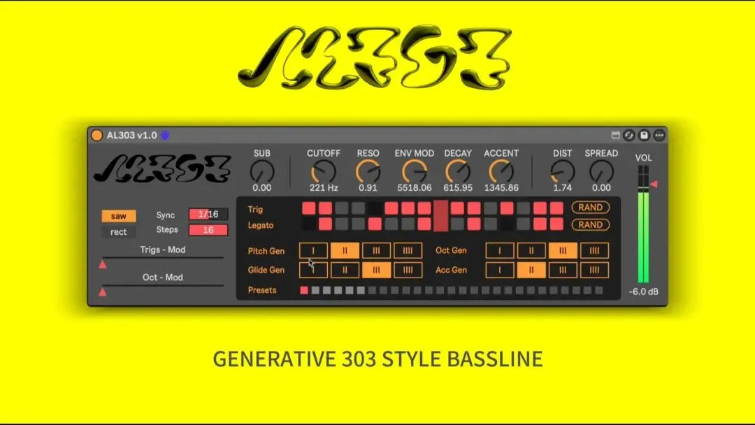 为了致敬电子音乐界的经典乐器TB303,ALD主理人兼MaxMSP讲师GUAN开发了一款改版的Max For Live插件-AL303,并且开源免费赠送(见视频结尾获取)。