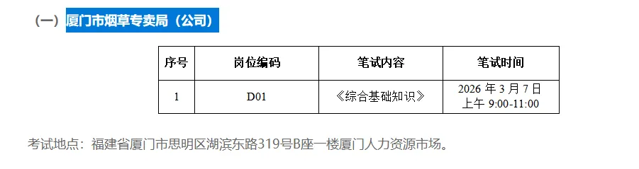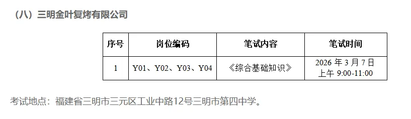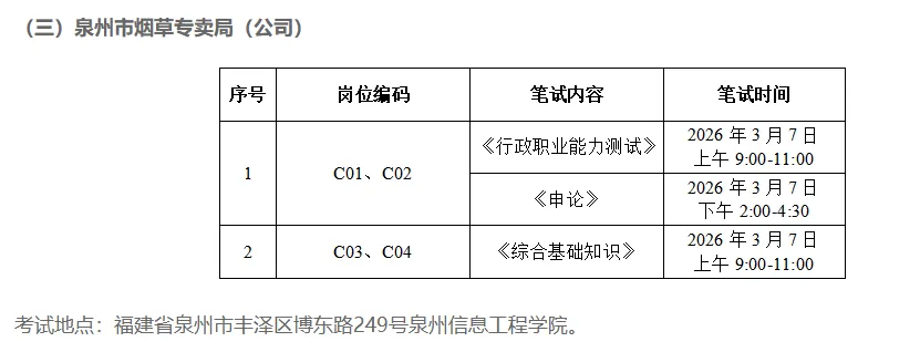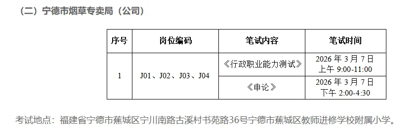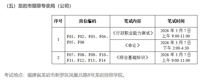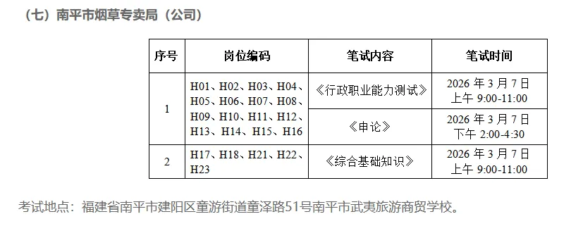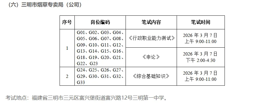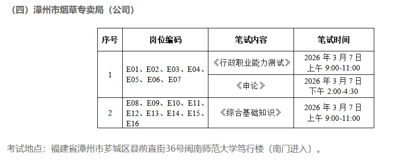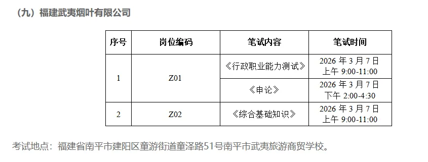 福建省烟草专卖局(公司)2026年招聘(第二批)笔试定于近期在招聘单位所在地市举行,现将具体事项通知如下: