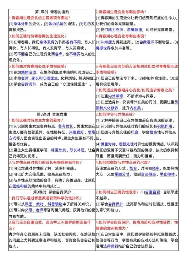 新七年级下册道法课课贴(可裁剪)完整电子版可打印!家长关注收藏,让孩子用高效的方法学透知识点,用优质的资源为学习赋能,在成长的赛道上稳步前行,轻松提分!