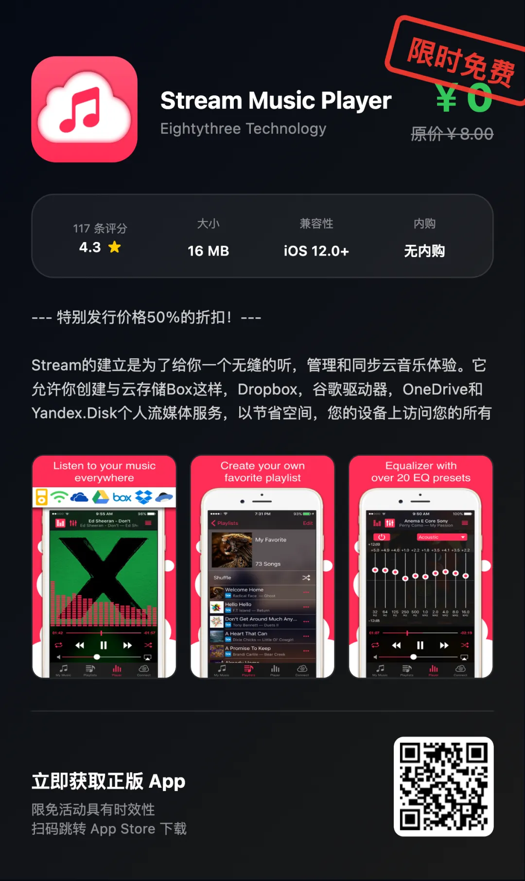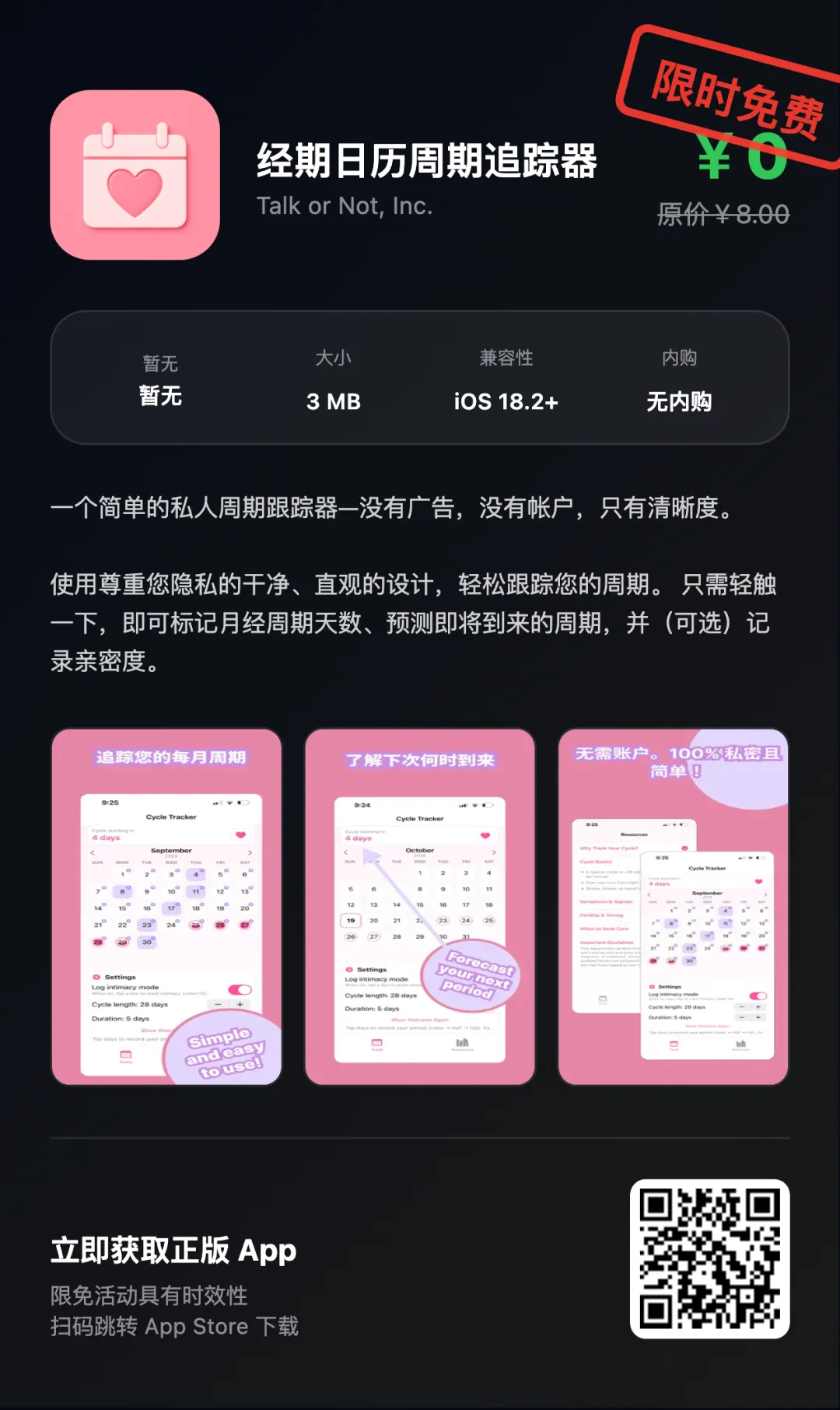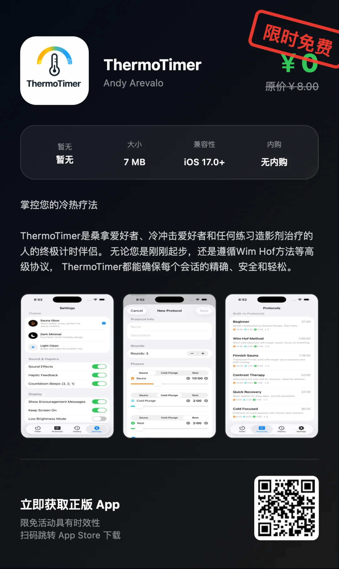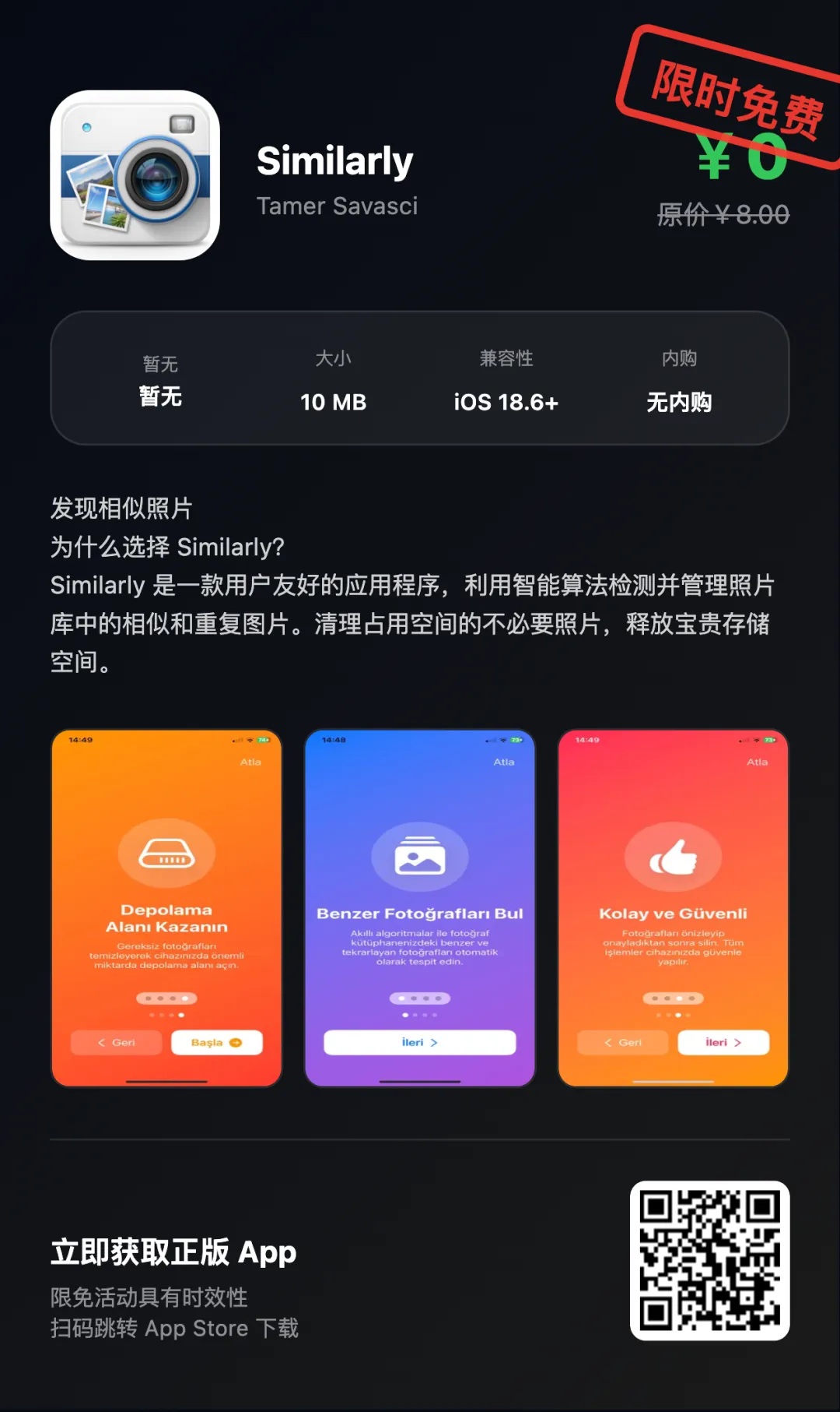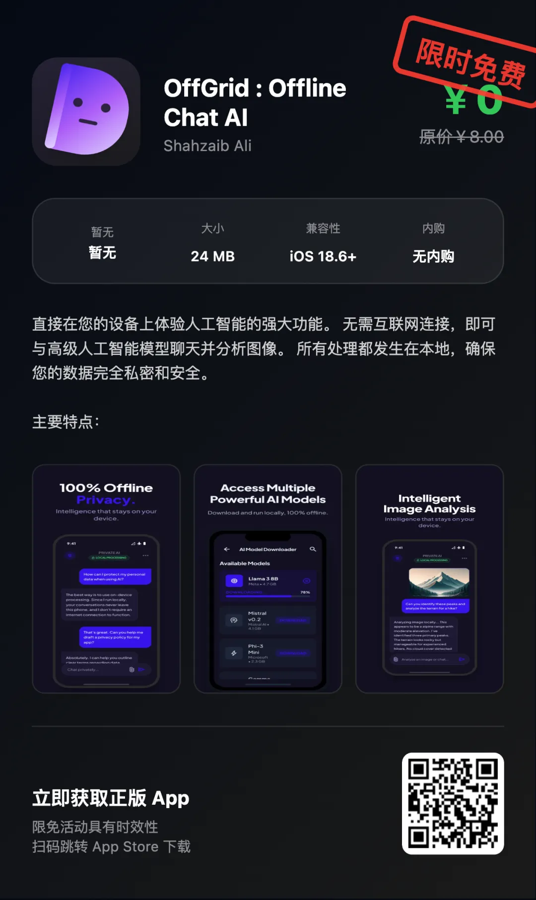 “App Store限免优惠或推荐精品应用,一旦下载,账号再次下载即永久免费!如果收费则为限免结束!!下载前请仔细核对应用或游戏价格,实际价格以App Store页面为准”