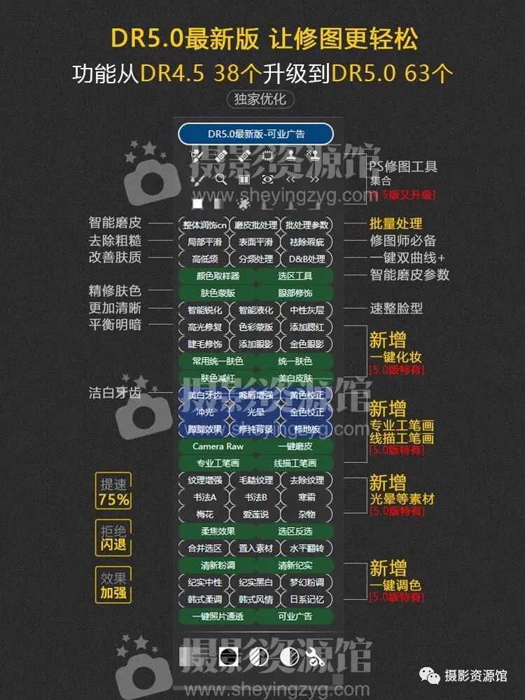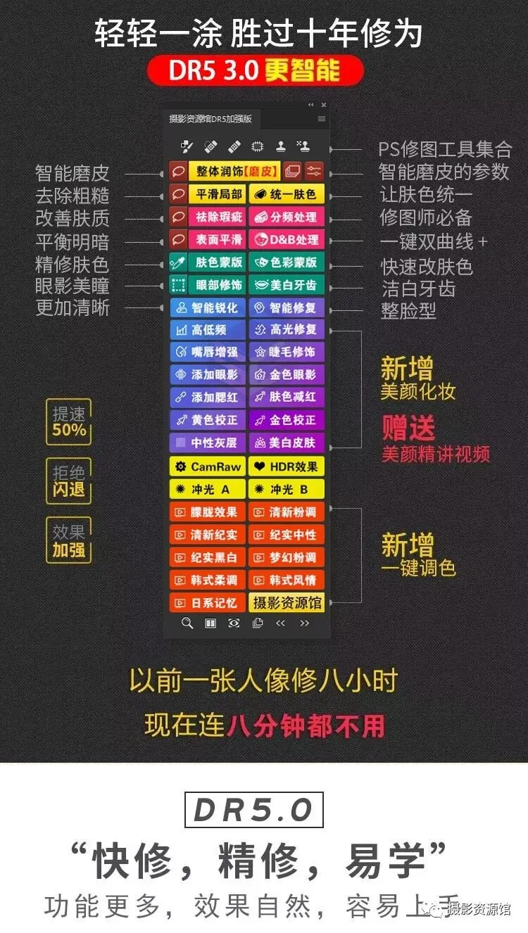 集成DR5磨皮插件和一键工笔画插件所有功能