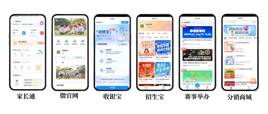 我们的定制产品,有英语、中文阅读(大语文整本书精读课程体系)、对外汉语、数学思维、美术、书法、音乐、口才、戏剧、舞蹈、体育、编程等,方便机构开设独具特色的课程,一键拓科。