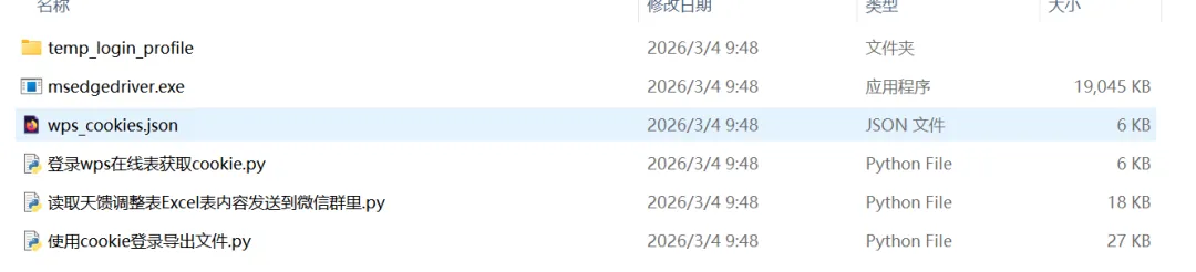 # 登录wps在线表获取cookie.pyimport jsonimport timeimport osimport shutilfrom selenium import webdriverfrom selenium.webdriver.edge.options import Optionsfrom selenium.webdriver.common.by import Byfrom selenium.webdriver.support.ui import WebDriverWaitfrom selenium.webdriver.support import expected_conditions as ECclass WPSLoginToGetCookie:"""专门用于手动登录并获取Cookie的工具"""def __init__(self):self.doc_url = "https://www.kdocs.cn/l/******"self.cookie_file = "wps_cookies.json"self.driver = Nonedef setup_browser_simple(self):"""简化版浏览器配置"""print("🔧 正在配置浏览器(简化版)...")try:# 使用最基本的配置options = Options()# 移除可能导致问题的复杂配置# options.add_argument("--window-size=1400,900")# options.add_argument("--disable-blink-features=AutomationControlled")# options.add_experimental_option("excludeSwitches", ["enable-automation"])# options.add_experimental_option('useAutomationExtension', False)# 启动浏览器self.driver = webdriver.Edge(options=options)print("✅ 浏览器启动成功")# 最大化窗口self.driver.maximize_window()print("✅ 窗口已最大化")return Trueexcept Exception as e:print(f"❌ 浏览器启动失败: {e}")print("\n💡 可能的解决方案:")print("1. 检查是否已安装Microsoft Edge浏览器")print("2. 检查Edge浏览器版本")print("3. 检查是否安装了正确的EdgeDriver")print("4. 尝试以管理员身份运行Python脚本")return Falsedef manual_login_and_save(self):"""手动登录并保存Cookies"""print("=" * 60)print("🔐 请在打开的浏览器中手动登录WPS账号")print("步骤:")print("1. 在浏览器中完成登录(可能需要滑块验证)")print("2. 登录成功后,确保当前页面是目标文档页面")print("3. 确认无误后,按回车键保存Cookies")print("=" * 60)# 访问文档页面self.driver.get(self.doc_url)time.sleep(5)# 检查是否需要登录try:login_elements = self.driver.find_elements(By.XPATH,"//button[contains(text(), '登录')] | //div[contains(text(), '登录')]")if login_elements:print("⚠️ 检测到需要登录,请手动登录...")except:pass# 等待用户手动登录input("\n📌 登录完成后,请按回车键继续保存Cookies...")try:# 获取Cookiescookies = self.driver.get_cookies()# 保存到文件with open(self.cookie_file, 'w', encoding='utf-8') as f:json.dump(cookies, f, ensure_ascii=False, indent=2)print(f"\n✅ Cookies已成功保存到: {os.path.abspath(self.cookie_file)}")print(f"📄 共保存 {len(cookies)} 个Cookies")# 显示前几个重要的Cookieprint("\n📋 保存的重要Cookie:")for cookie in cookies[:3]:if 'name' in cookie and 'value' in cookie:name = cookie['name']value_preview = cookie['value'][:20] + "..." if len(cookie['value']) > 20 else cookie['value']print(f" {name}: {value_preview}")return Trueexcept Exception as e:print(f"❌ 保存Cookies失败: {e}")return Falsedef cleanup(self):"""清理资源"""if self.driver:print("\n⏳ 正在关闭浏览器...")time.sleep(2)self.driver.quit()print("✅ 浏览器已关闭")def run(self):"""运行主流程"""print("🚀 WPS手动登录获取Cookie工具")print("=" * 60)# 检查是否已有Cookie文件if os.path.exists(self.cookie_file):print(f"⚠️ 检测到已存在的Cookie文件: {self.cookie_file}")choice = input("是否覆盖?(y/n): ").strip().lower()if choice != 'y':print("❌ 已取消操作")return Falsetry:if not self.setup_browser_simple():return Falseif self.manual_login_and_save():print("\n🎉 登录和Cookie保存完成!")print("现在你可以运行 auto_export.py 来进行自动导出操作了。")return Trueelse:print("❌ 登录或保存Cookies失败")return Falseexcept Exception as e:print(f"❌ 程序执行出错: {e}")return Falsefinally:self.cleanup()if __name__ == "__main__":tool = WPSLoginToGetCookie()tool.run()