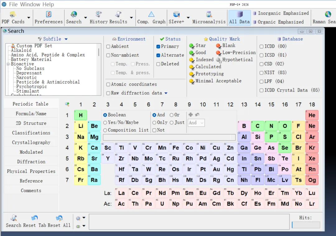 注意:ICDD PDF-2数据库不包含LPFS子相库(DB-码=04)