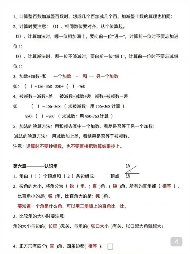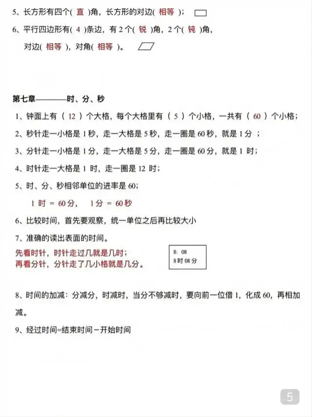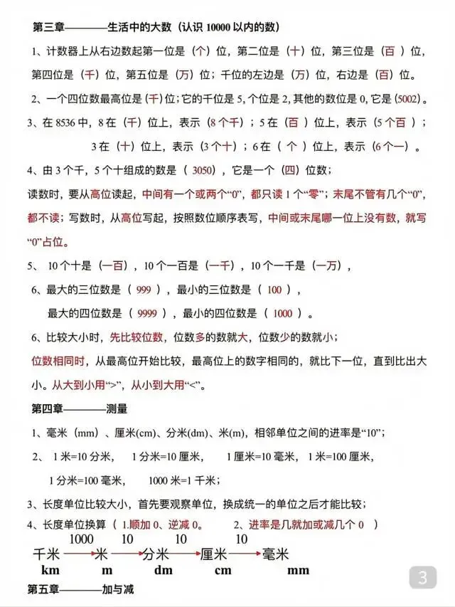 二年级下册数学《单元知识点总结》,电子版可打印