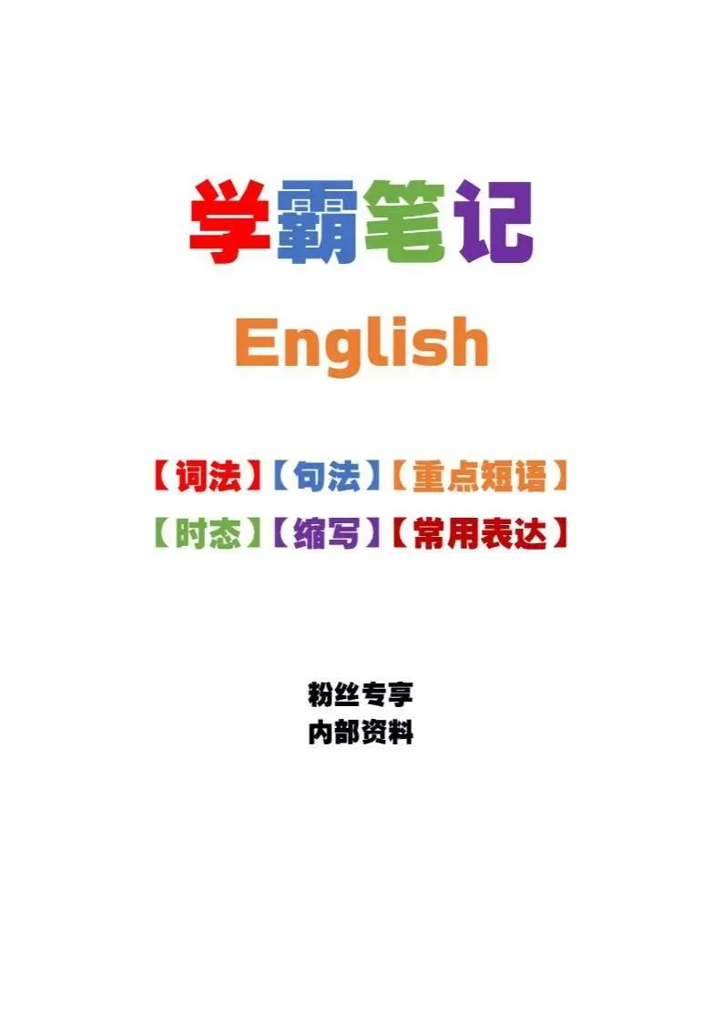 英语资源|最新彩色版《英语学霸笔记》PDF电子版204页完整版(词法+句法+重点短语+时态+缩写+常用表达)