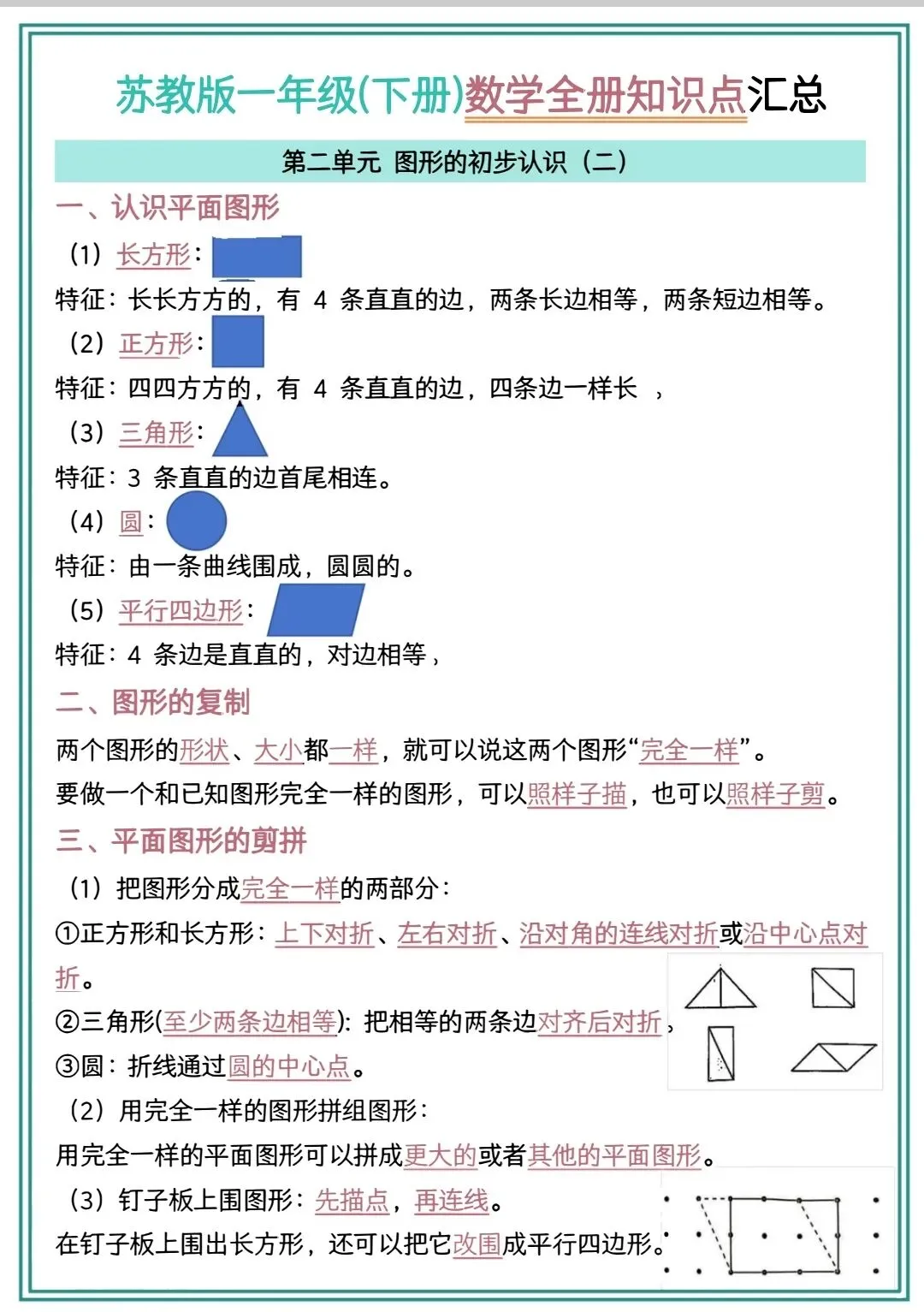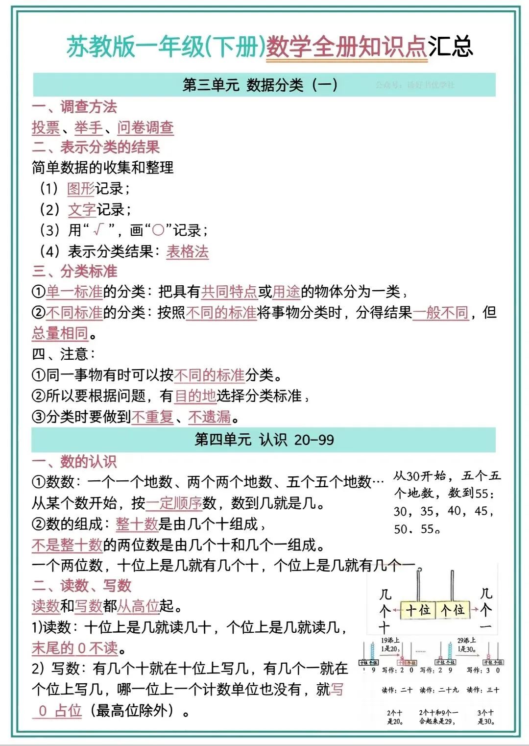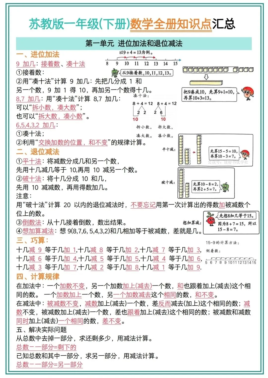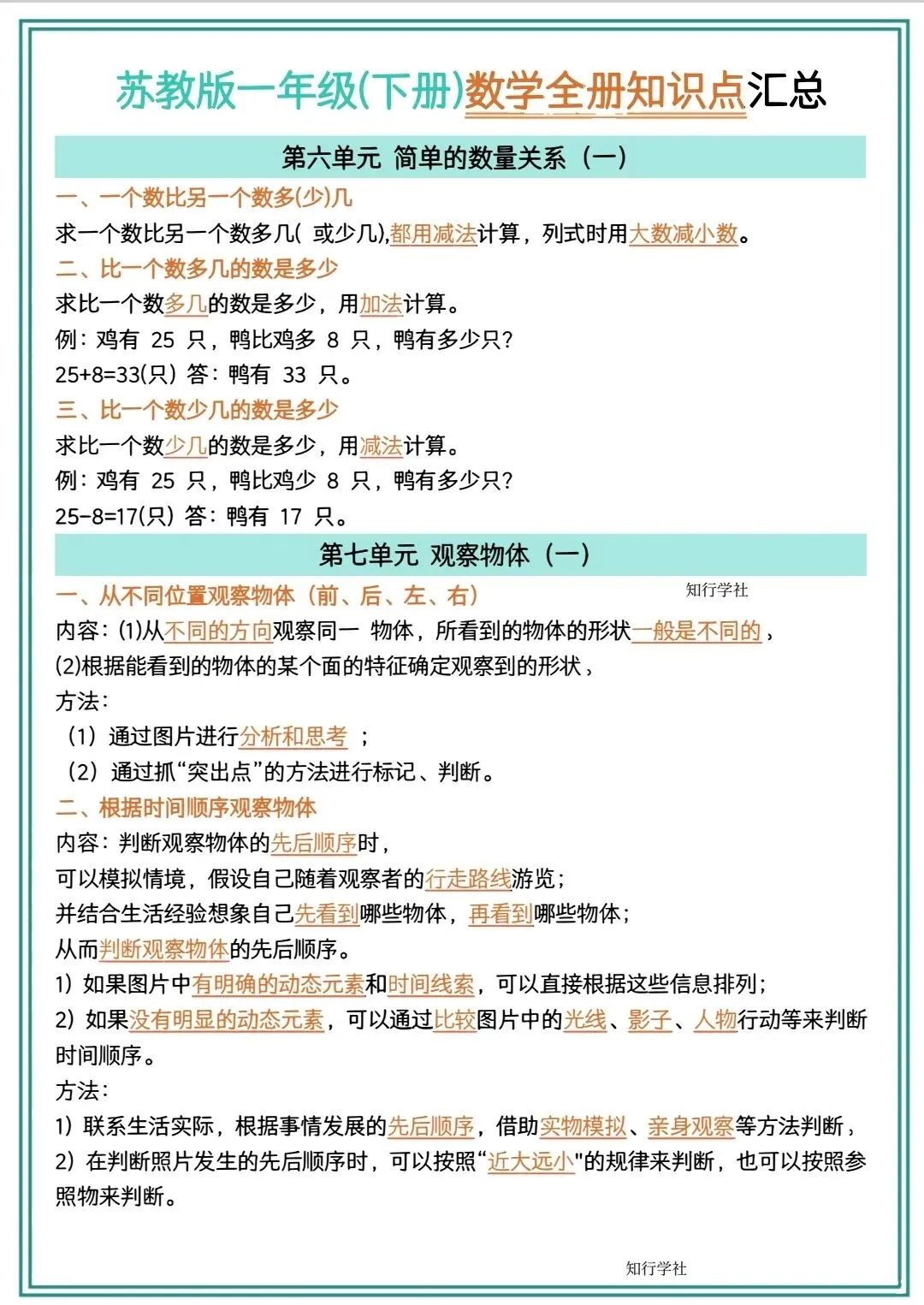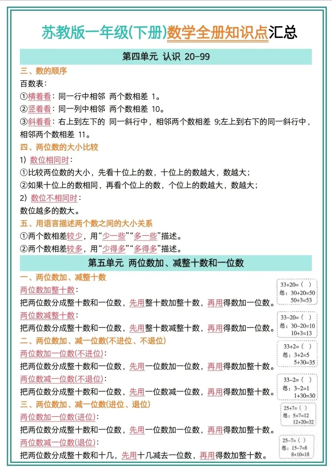 一年级下册数学检测知识点汇总电子版可打印