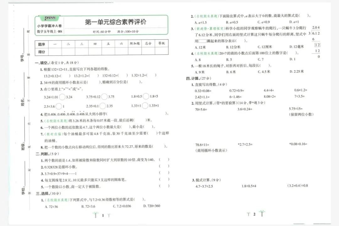 小学数学《小学学霸冲A卷》电子版免费下载