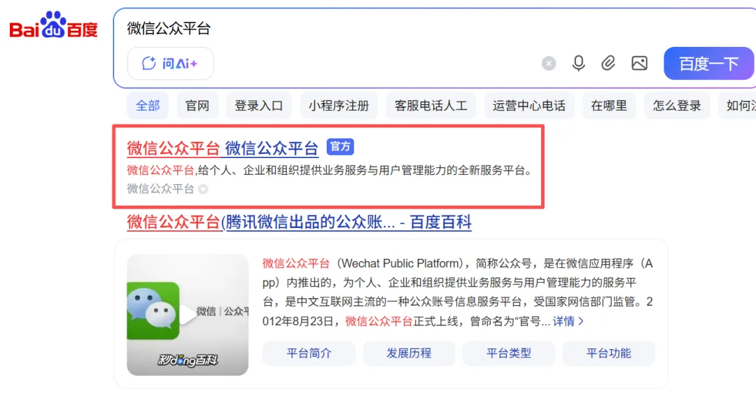 第一步先注册一个公众号,百度搜索微信公众平台,找到带官方字眼的进入