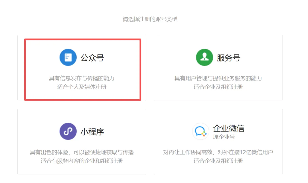 进入后注册类型选择【公众号】然后按照要求填写就可以开通,基本都是秒通过的!