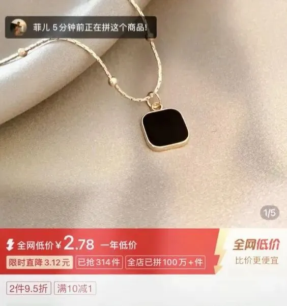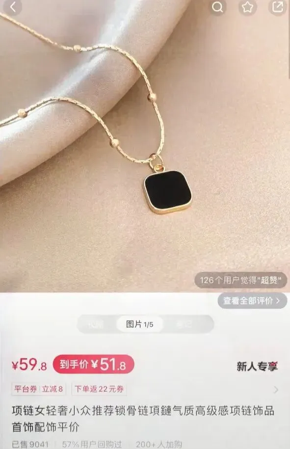 也就是说,咱不用自己囤货,顾客下单后,厂家直接发货,直接坐在家里赚中间的差价:59.8 – 2.8 = 57 元。就这条项链,卖了 9000 多单。光这一个品,利润就有 57×9000=513000 元。