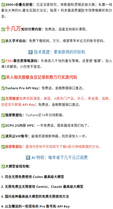 ✅3000+份量化研报: 沉淀深度研究,用数据和逻辑武装大脑;私募一线量化大神的RL量化实践方法论; 每周 1 到多篇高质量全市场策略解析和分享 。