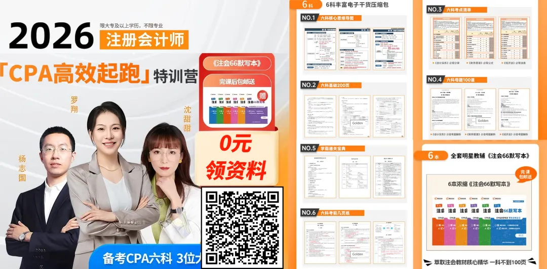《CPA六科思维导图》.PDF CPA六科高效学习法——最新版思维导图来啦! 注会考试内容体系庞杂,知识点数量众多,若考生只是按部就班从前往后学习,只怕是学了后面,忘了前面,导致最终学习效率低下,备考效果并不是很乐观。 而《CPA六科全解思维导图》能够将6本厚厚的教材,70章节内容聚集在一张图上,简洁有条理、各章节知识点脉络清晰。有利于整合知识点,构建知识体系,便于加强记忆! CPA六科覆盖,知识导图全解 扫码立即0元领取全部 👇👇👇 为助力考生备考,已为大家整理好《CPA六科知识全解导图》,涵盖6科70章节、最新考试大纲整理等内容!教材太厚不可怕,思维导图带你走天下! 3 1 时间紧张记得适度弃CPA、中级考生也请注意!一年过CPA六 内容展示 注会六科教材的厚度,大家有目共睹,学习还未开始,考生已经瑟瑟发抖! 不过好在经过思维导图的“压缩”,为我们的备考大大“减负”,例如在六科思维导图中,我们可以看到: 会计:已为大家列出主、客观题高频考点及常考内容 细节知识点考点及重要程度: 税法:以思维导图的形式,详细列出章节、各大税种考点 审计:晦涩难懂,有了思维导图,制定审计框架,学会审计思维学习,备考更轻松! 财管:各章节串联学习,备考更高效! 经济法:需要背诵的内容很多,如何做到有条理,不漏掉知识点,思维导图已为你建好! 战略:难度不大,掌握这些章节列举的知识点,通过考没问题! 全面的概念梳理,用看图标的方式理解知识,相比于在一本厚厚的教材中广撒网,学会利用知识思维导图,要快捷、高效得多! CPA六科全覆盖,知识导图全解 扫码立即0元领取全部 👇👇👇 3 2 时间紧张记得适度弃CPA、中级考生也请注意!一年过CPA六2 思维导图的正确“打开”方式 学习最忌讳的事情就是不懂得复盘,而“一个东西你真正理解了,它是会刻在你的脑子里的。”就比如学完每一章节内容,脑海中需要呈现出这一章的各个知识点,所以,考生在利用以上思维导图时,可按以下步骤: Step1:学完每一章节,根据自己的理解在脑海中构造一幅思维导图,再与领取的导图进行比较,对所学知识点查缺补漏; Step2:根据已制定的计划,背诵记忆当天内容,反复2遍保证记忆熟练; Step3:每天对前2章进行抽背回忆,反复加深印象,以达到最高学习效果。 如果你还没有开始备考,需要抓紧时间了!2024年对于考生们来说依然是关键的一年! 助力2024CPA备考,六科知识全解导图,涵盖6科70章节,重点突出,多色标记,一份好的资料能够帮助你更好理解知识点,轻松备考! CPA六科全覆盖,知识导图全解 扫码立即0元领取全部 👇👇👇 限时免费领取CPA备考课程 包含✅1366页电子资料, 完课包邮送📕注会66默写本! 现在不花一分钱就能加入!
