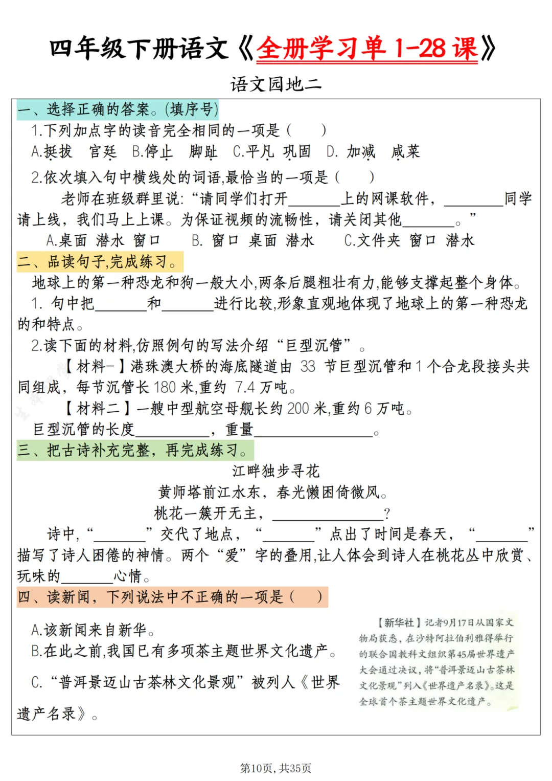 领取方式:关注公众号生本课堂,在公众号页面,点击发消息回复数字1029 即可免费获取高清PDF版。 有需要阅读理解专项提升的,点击查看合集四年级语文阅读提分通关:一线教师的精批心法与实战