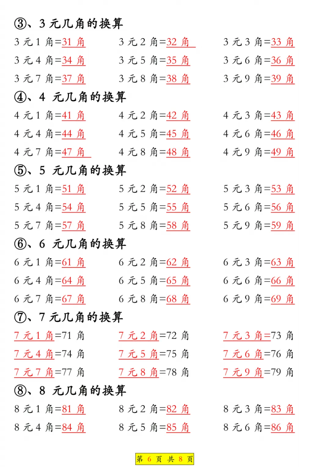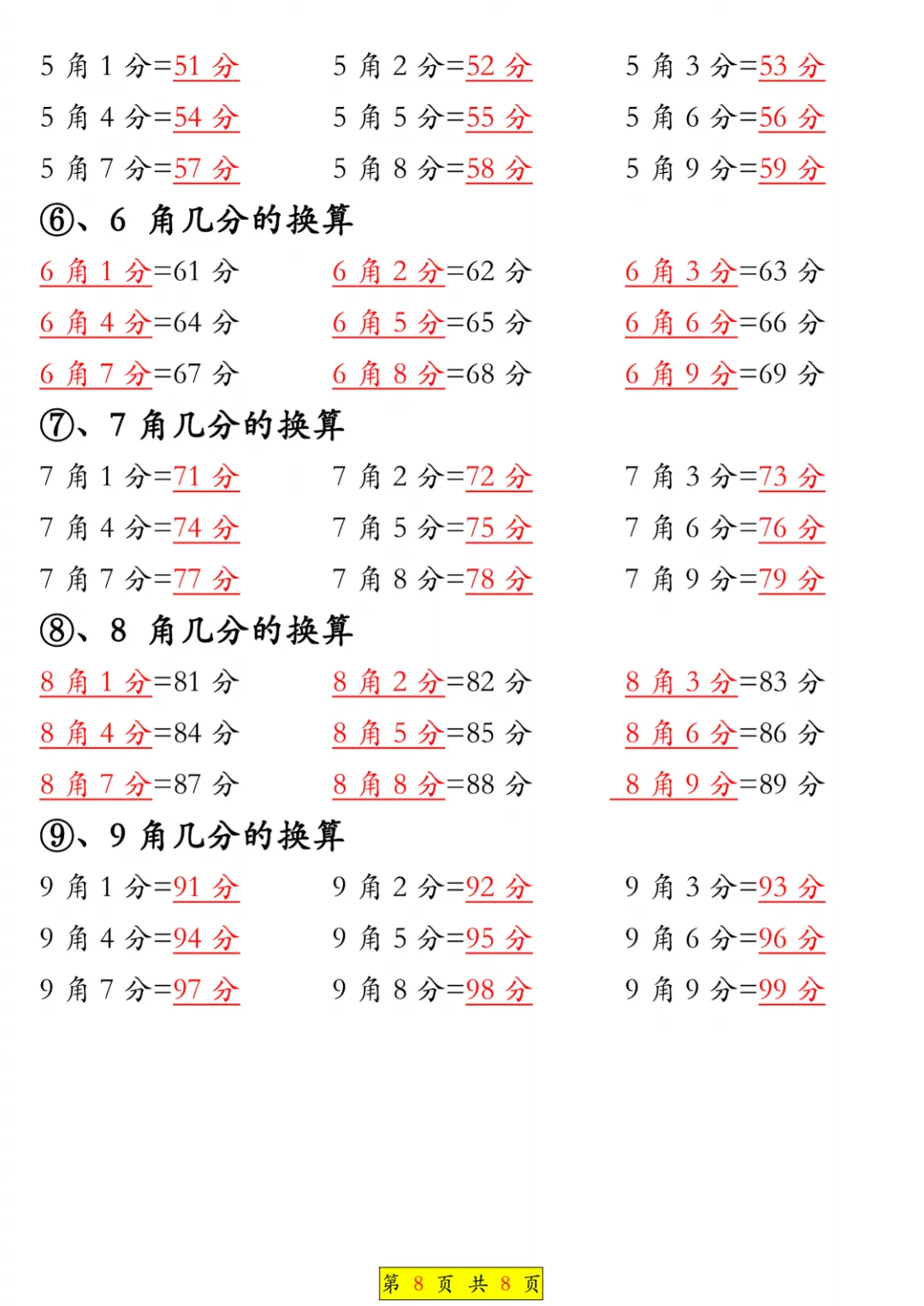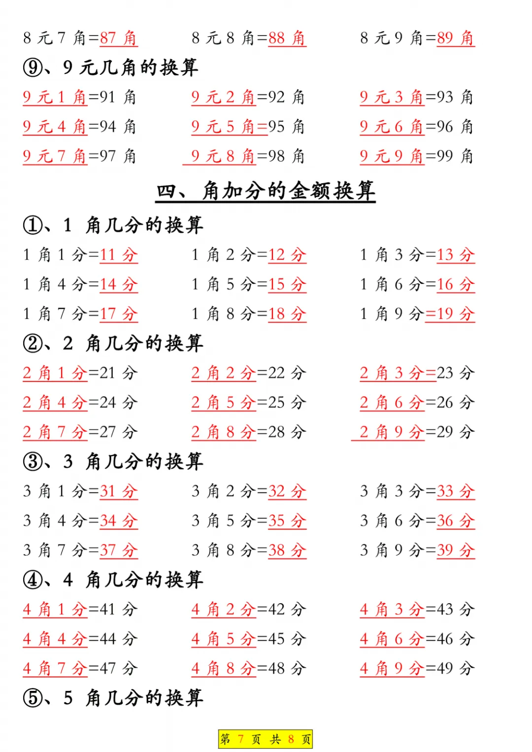 一年级数学学习必备!这份人教版知识点汇总涵盖认识图形、加减法、100 以内数的认识、人民币换算等核心内容,公式、口诀、换算技巧全整理,同步课本进度。打印出来让孩子每天记一点,夯实基础,家长辅导有抓手,轻松应对课堂练习~