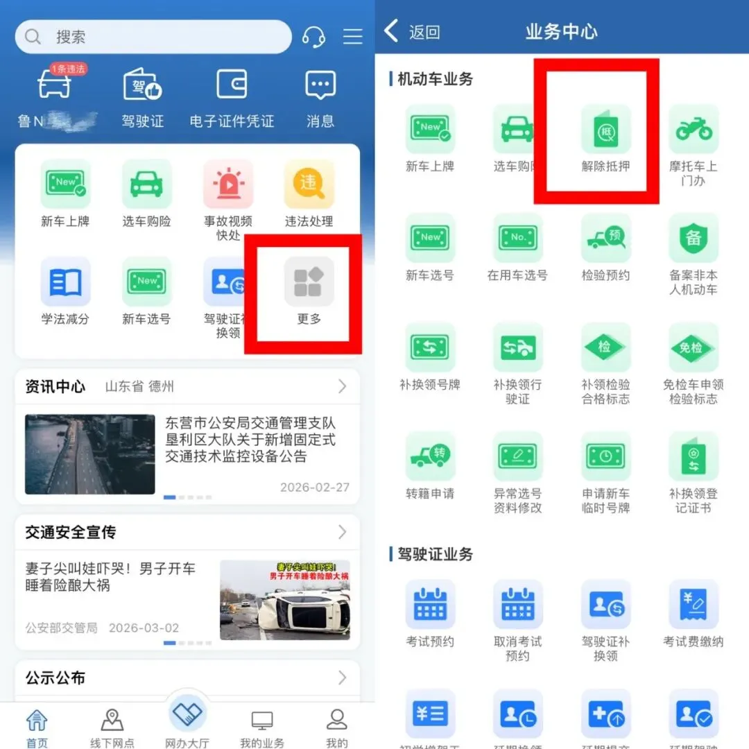 网上办理解除机动车抵押
