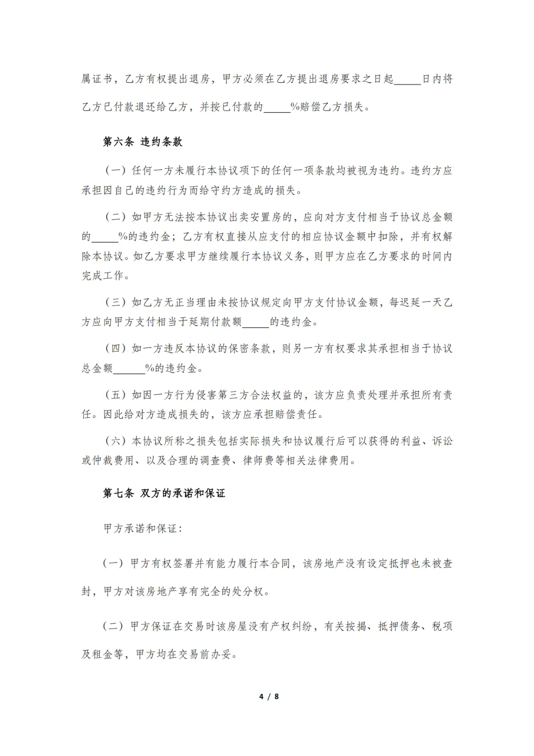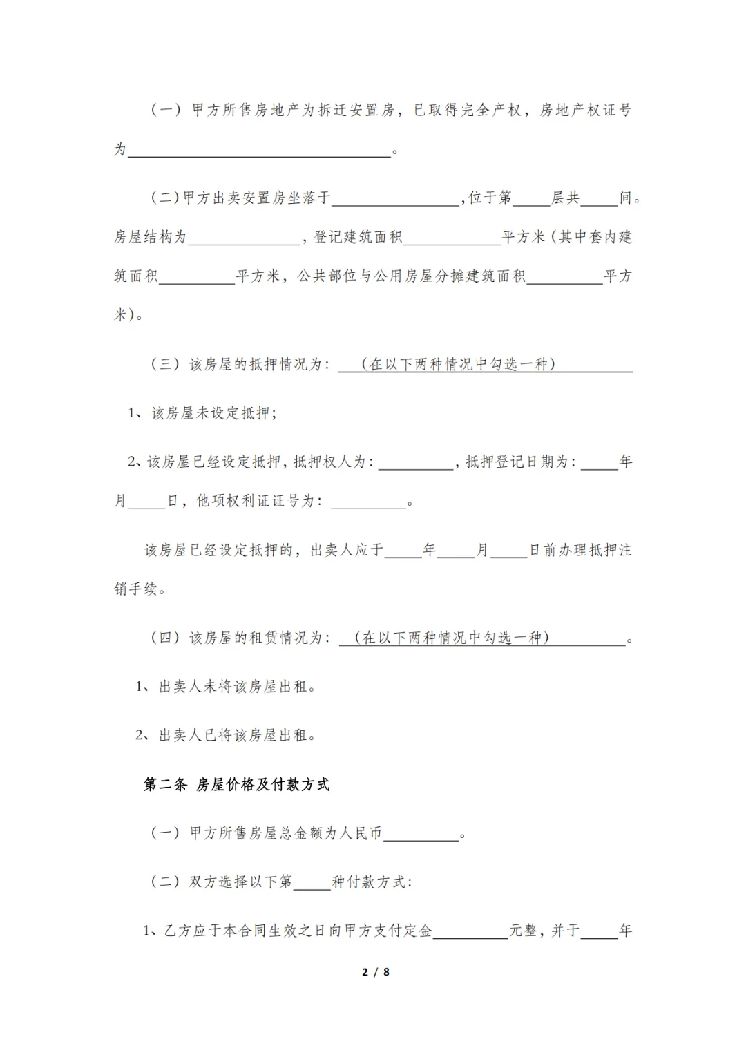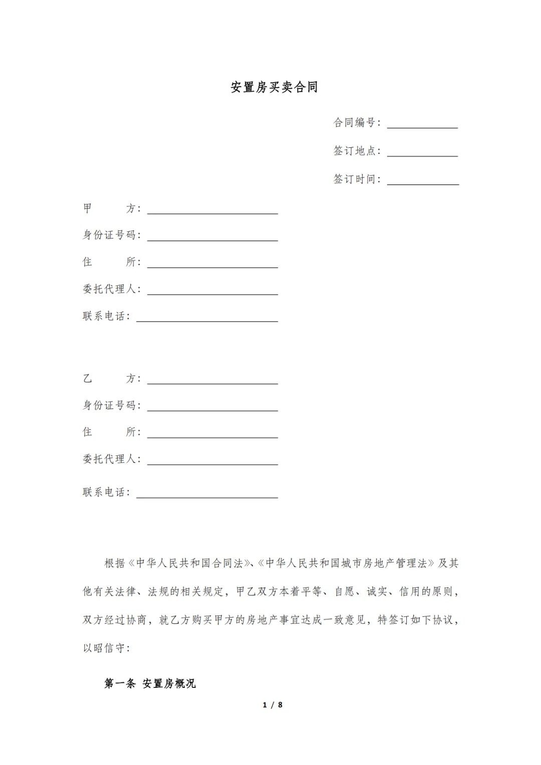 安置房买卖合同模板,WORD文档电子版,可免费下载打印