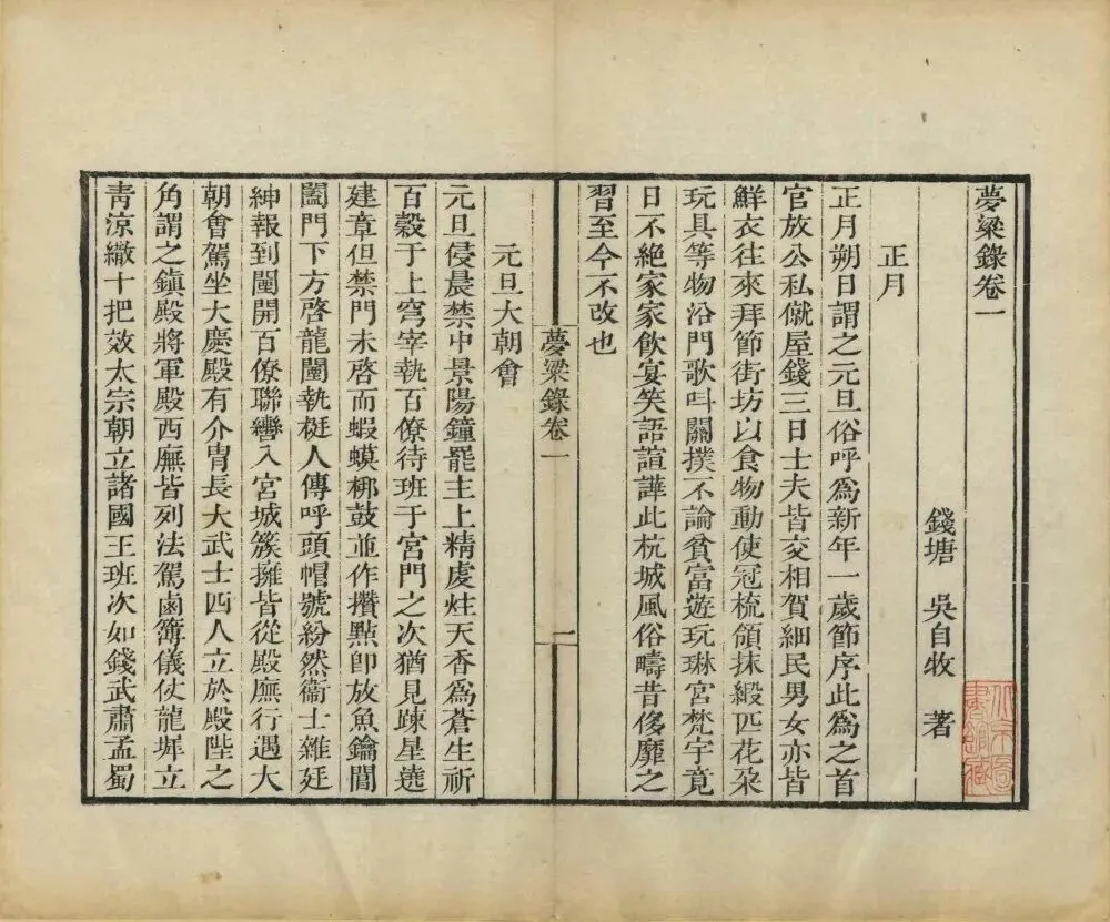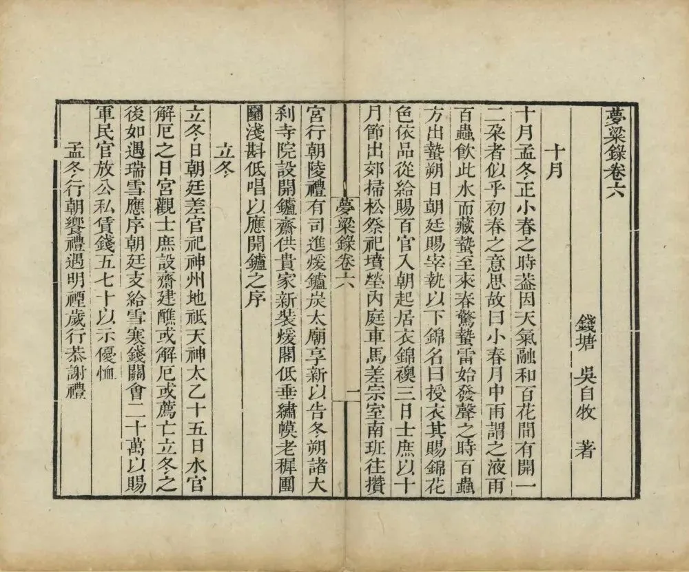 卷一至卷六按时序记述临安四时节令,从元旦、元宵、清明、端午到中秋、重阳、除夕,详述宫廷仪礼、民间习俗、节庆活动,如元宵灯山、中秋赏月、除夕守岁等,“开门七件事”(柴米油盐酱醋茶)亦首见于此。