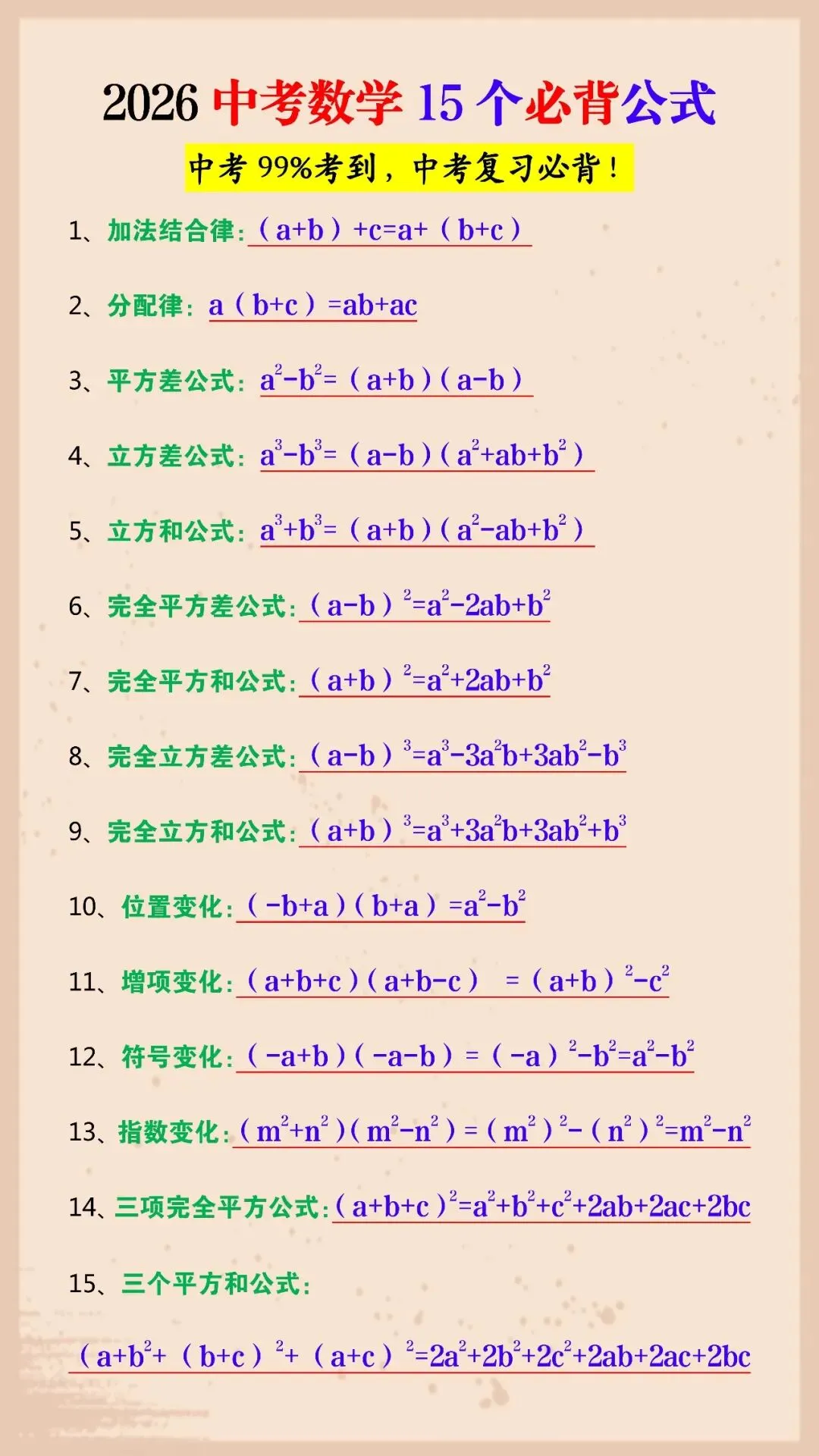 2026中考数学15个必背公式(可打印)中考99%考到,中考复习必背! 初中生日常 老师今天整理了2026中考数学15个必背公式,中考99%考到,中考复习必背! 电子版阅览 初中生配套学习教辅 如何领取这个电子版资料
