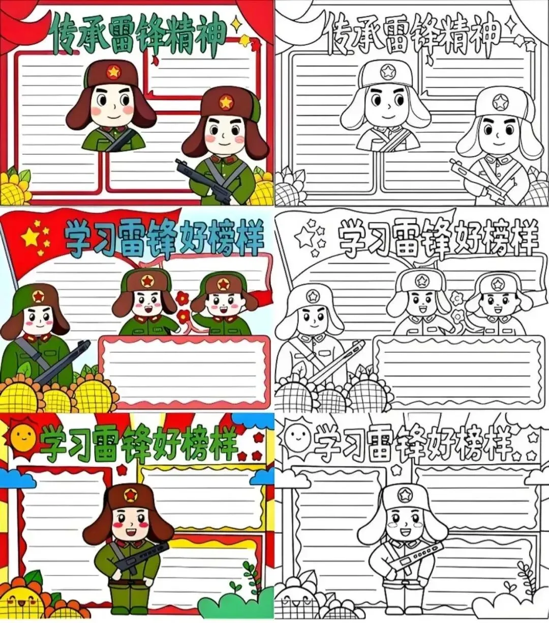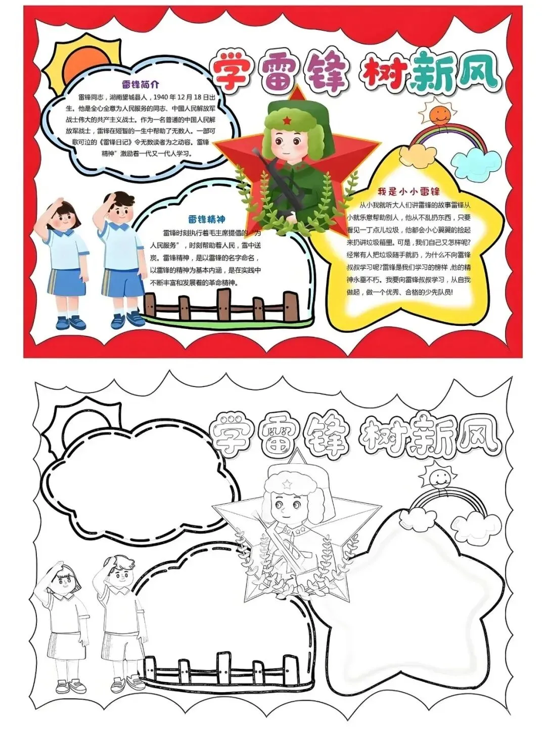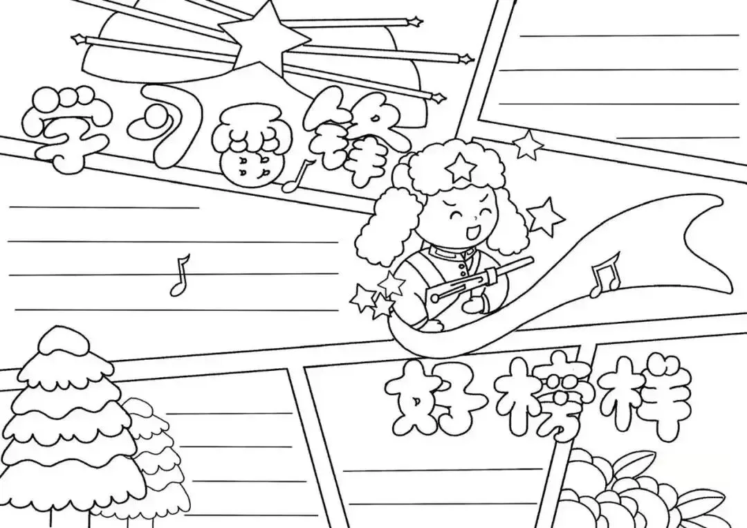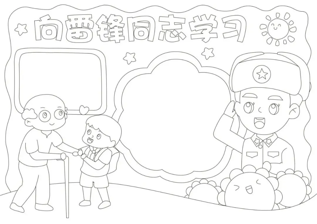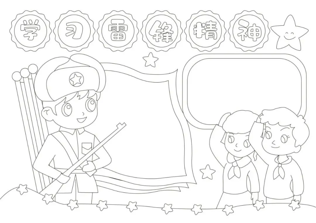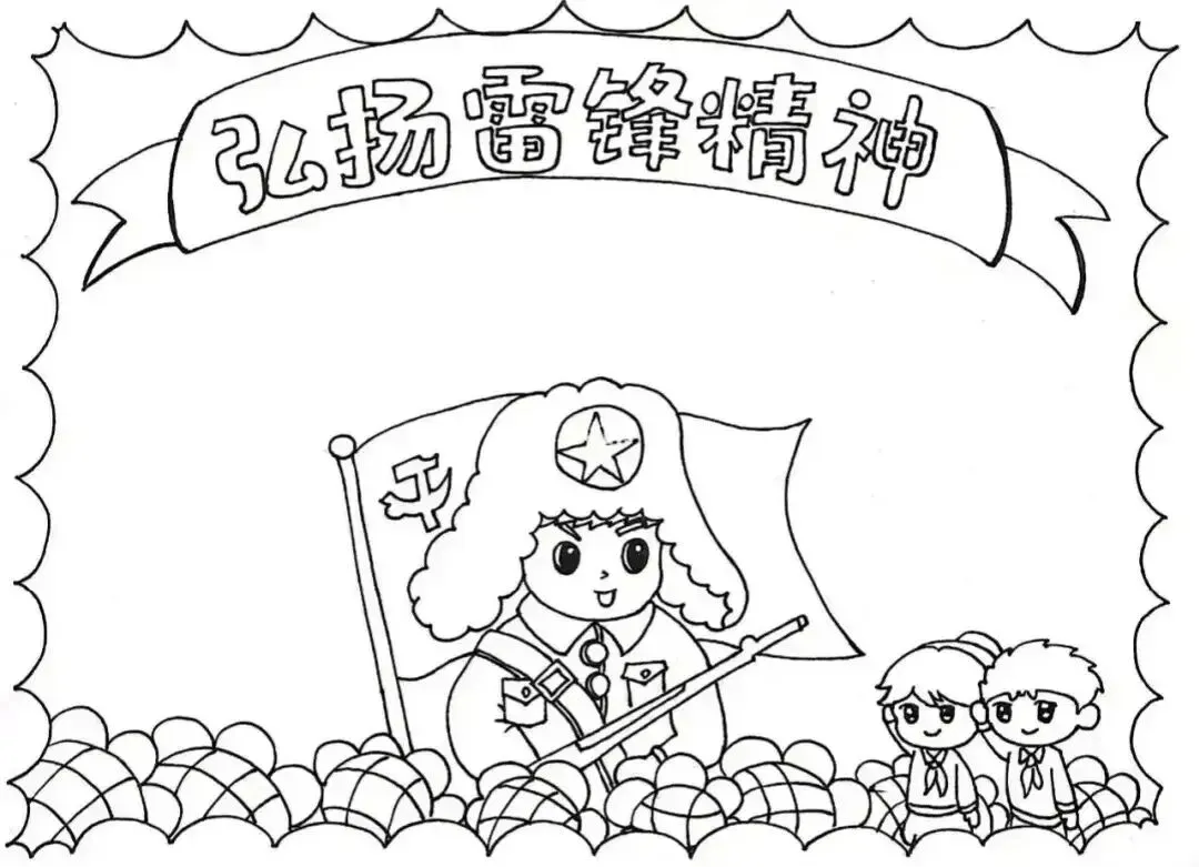 学雷锋手抄报大全,30张黑白线稿,可打印!