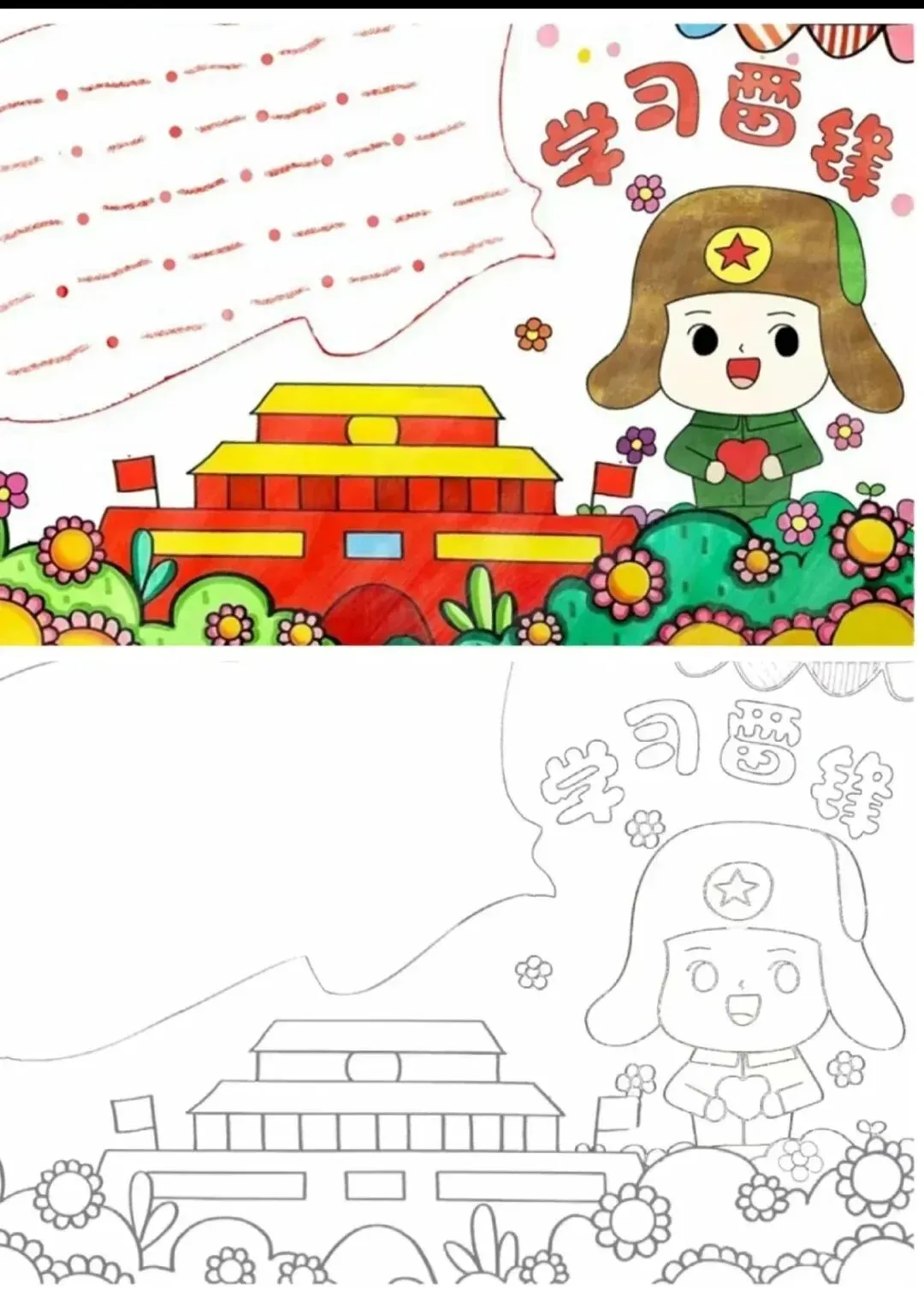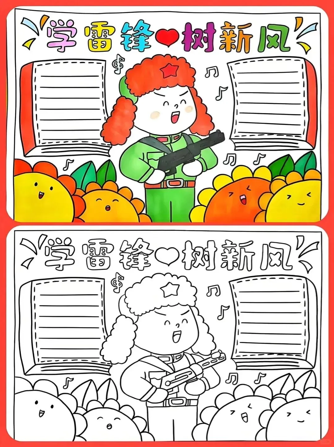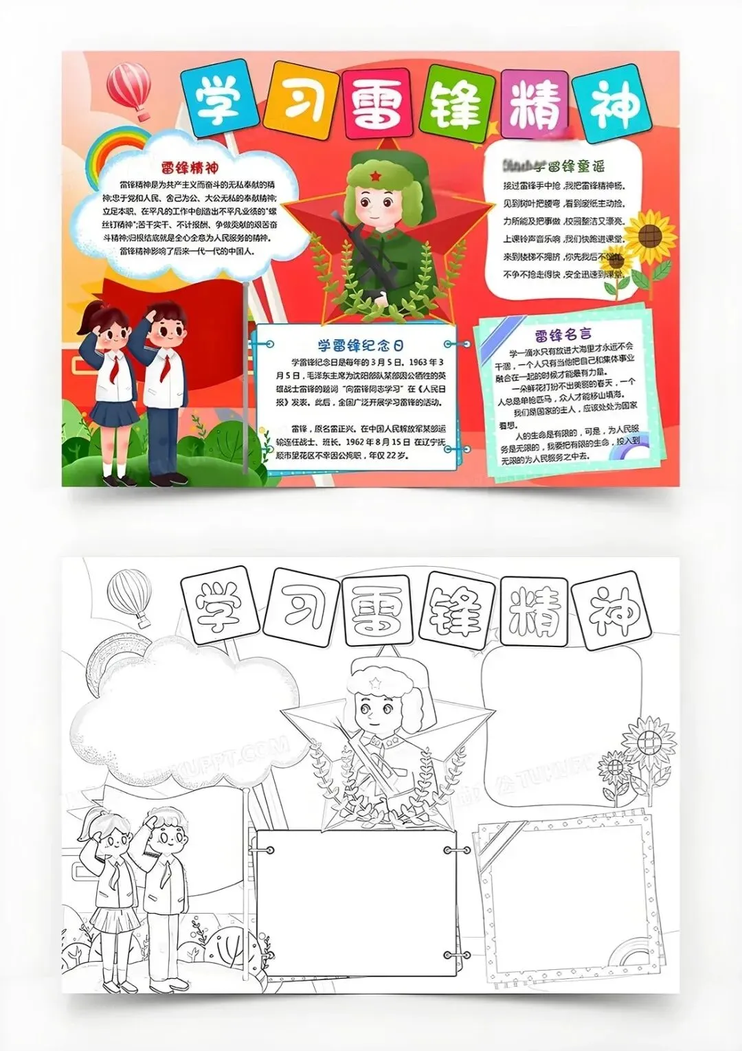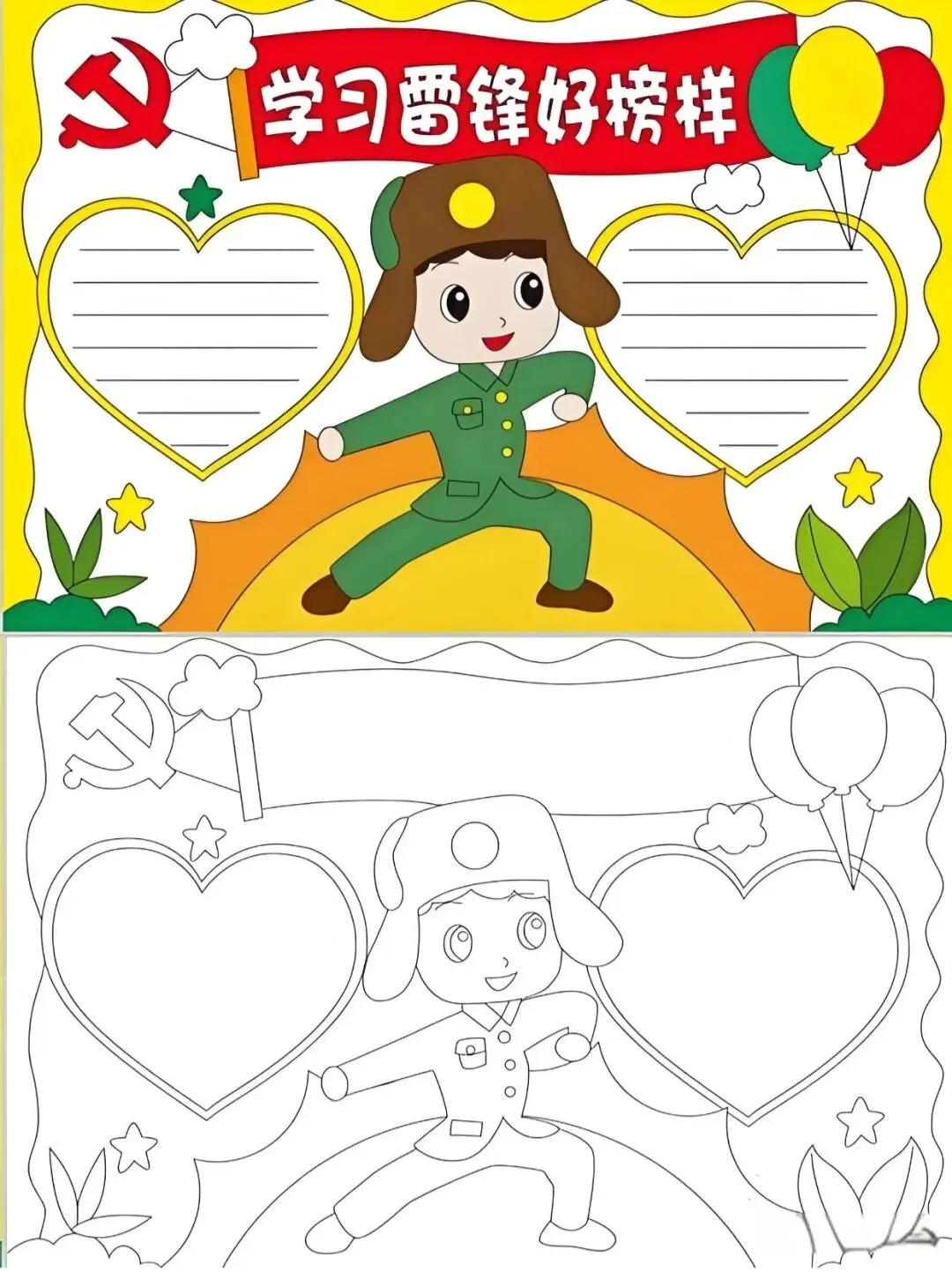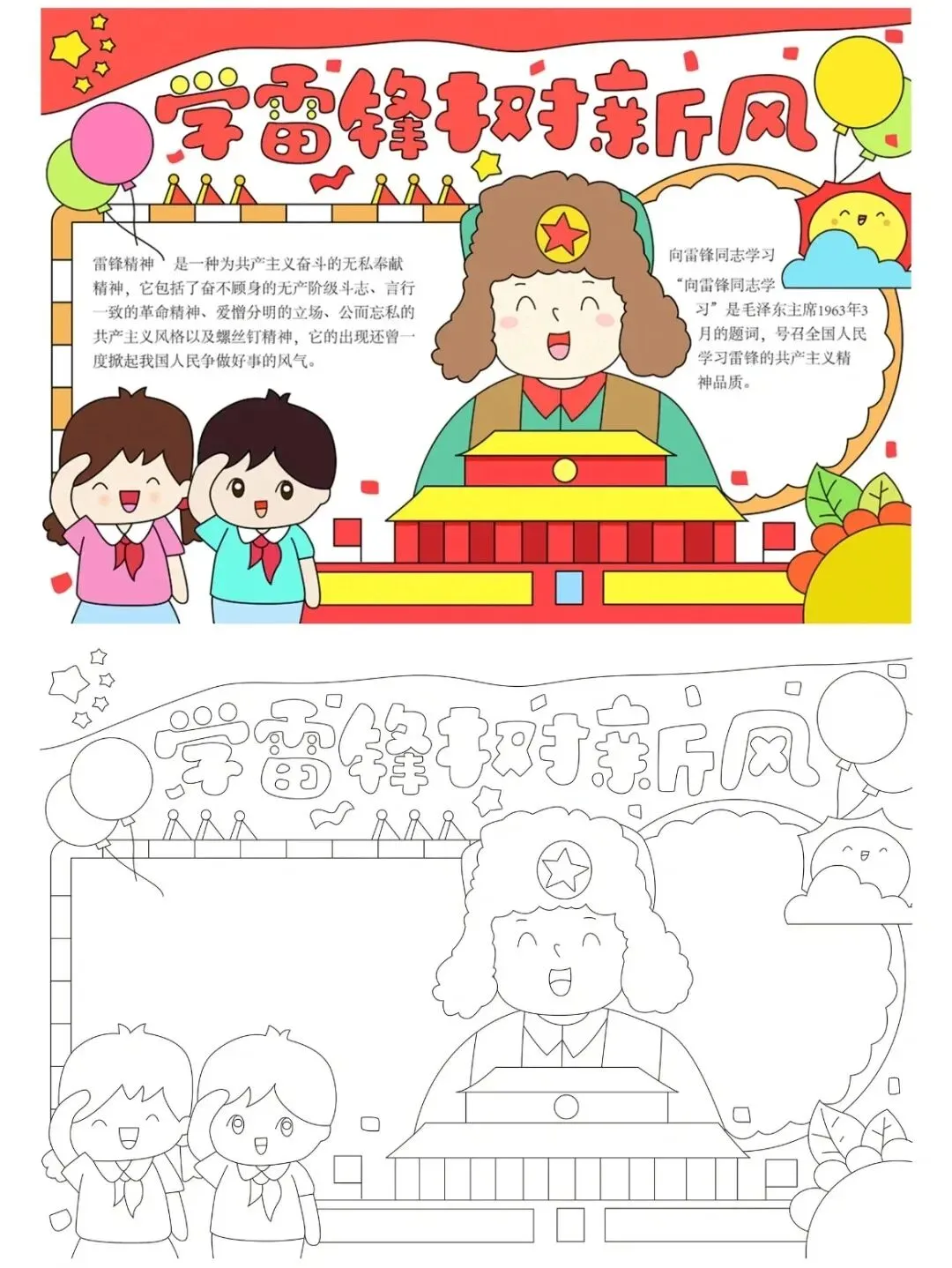 学雷锋手抄报大全,30张黑白线稿,可打印!