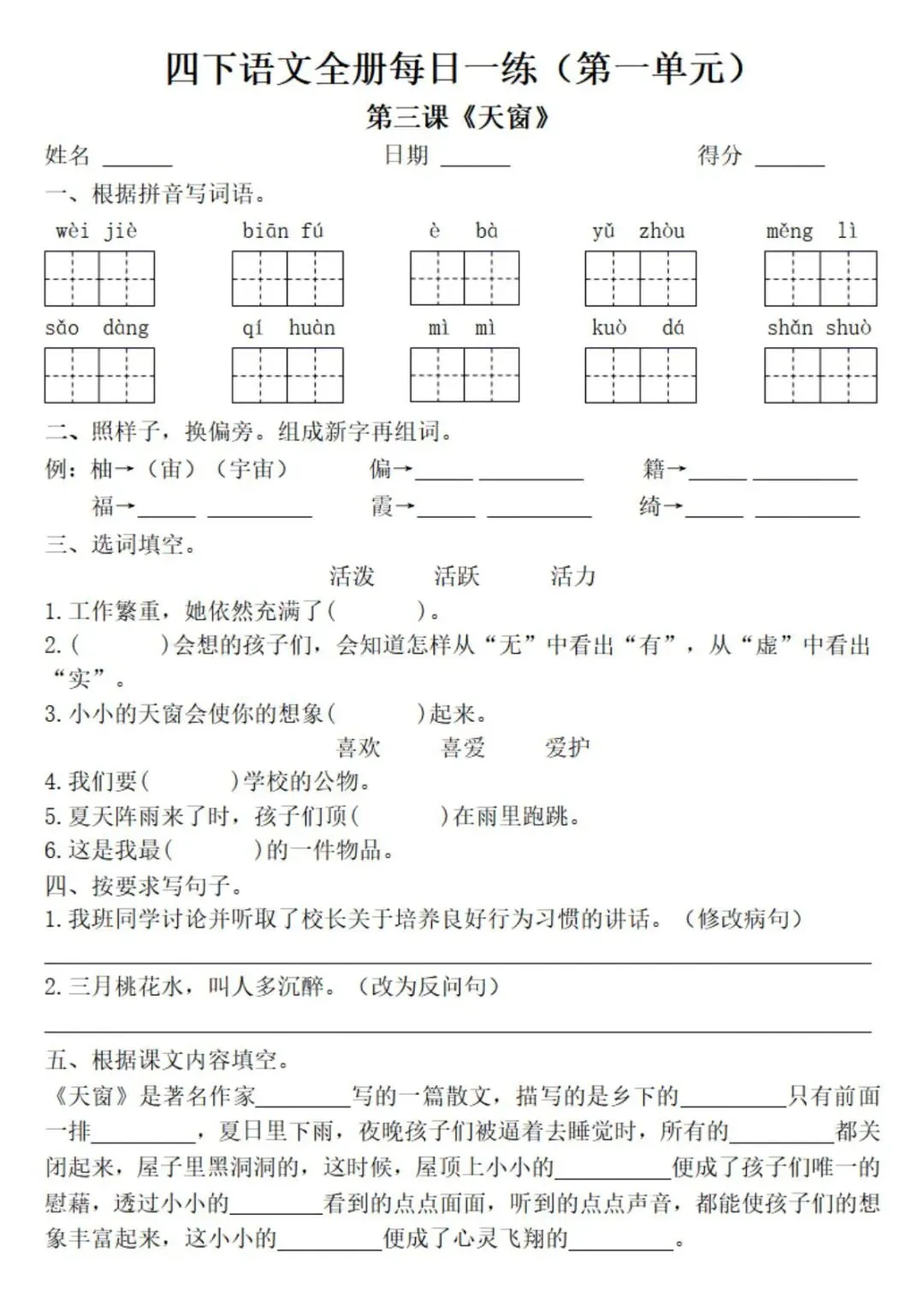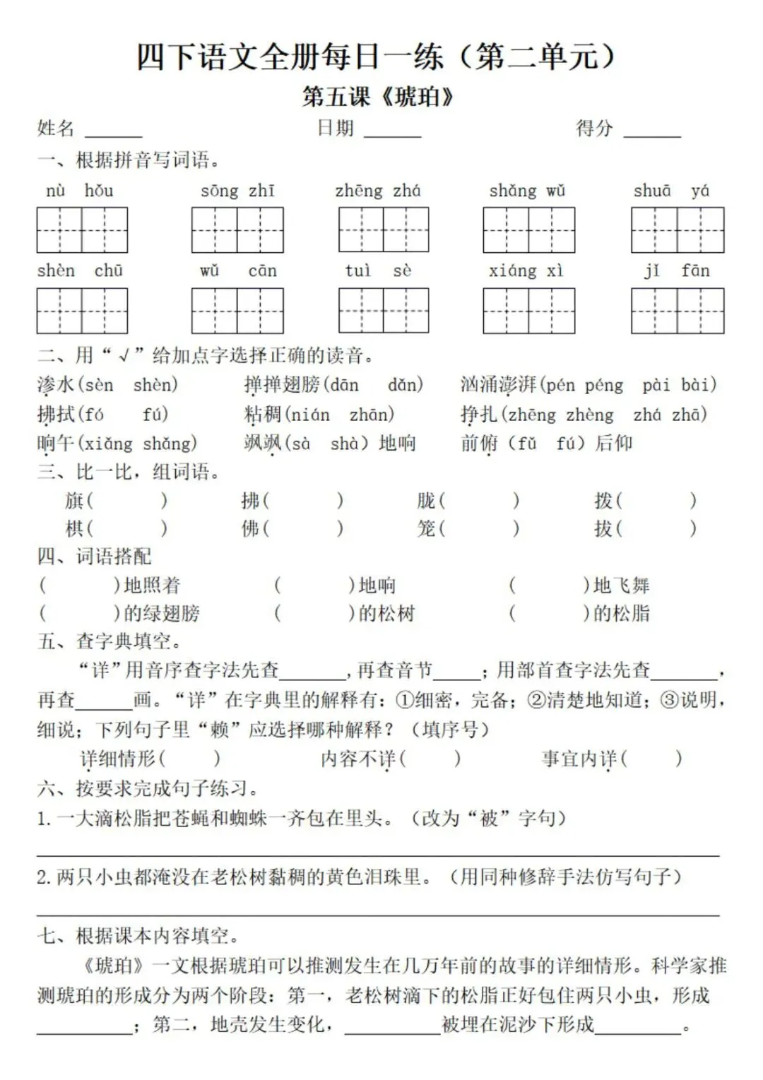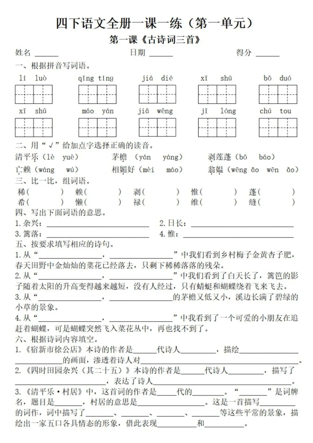 新版四下语文课时练,一课一练巩固基础。需要完整版的家长滑至文末👇