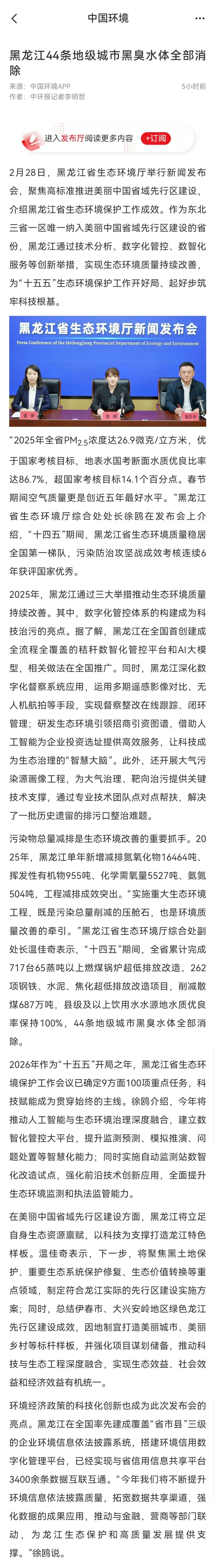 中国环境APP|黑龙江44条地级城市黑臭水体全部消除