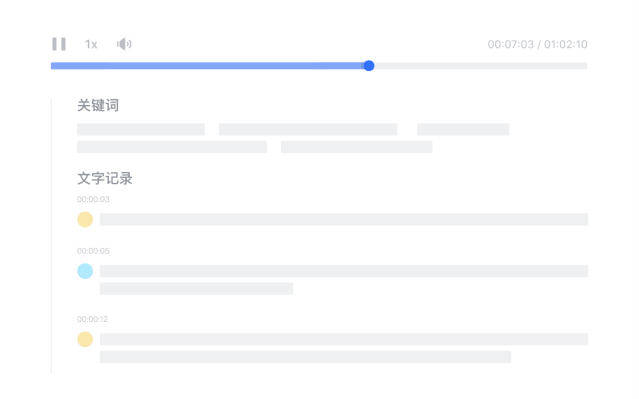 在「π」版本中,最吸晴的功能是「飞书妙记」,针对视频会议、会议纪要场景。妙记是一款「语音自动转文字」的效率神器,可将音视频内容转录为「强搜索、有重点、可翻译」的智能文字笔记。