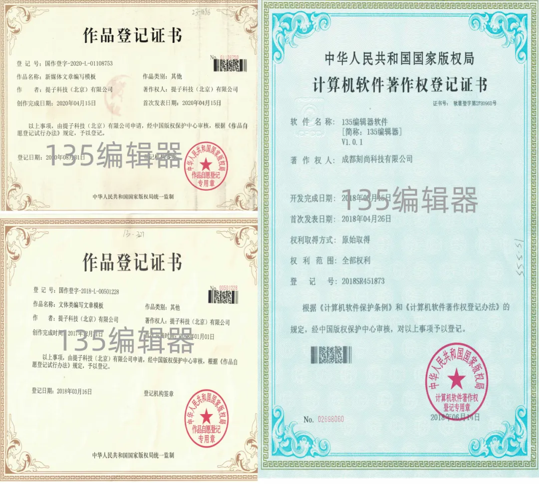 早期整个新媒体行业版权意识相对欠缺,2016年及之前135有部分素材来源网络、CC0及用户投稿。但是,后来业内包括我们发现CC0素材存在钓鱼的情况后,从2017年开始135新上素材均为全职设计师制作。135秉承的核心理念一直是海量优质、安全的素材,才能让编辑器的使用者满足需求。我们为了践行这个理念,也和版权图片、字体等平台合作,也欢迎更多素材方来合作。
