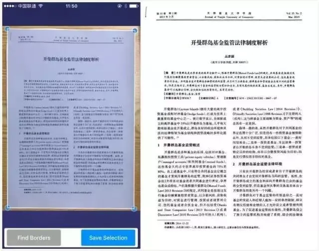 相比其它竞争产品,Scanner Pro具有强大的畸变矫正功能,可以极大减少因为文件弯曲或折叠带来的畸变。