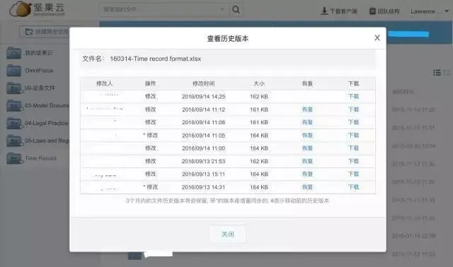 ▲坚果云的历史版本追踪界面