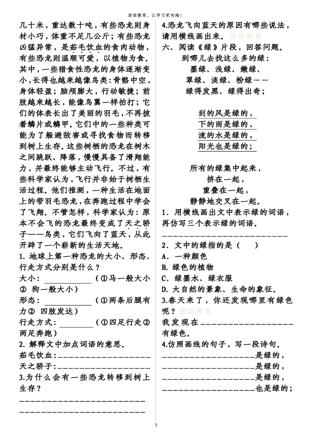 3.春天来了,你还发现哪里有绿色呢?