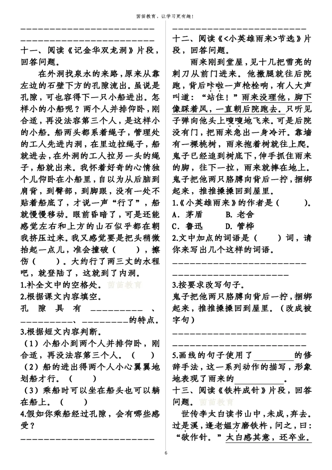 4.画线的句子使用了夸张的修辞手法,这一系列动作的描写,形象地表现了雨来的机智勇敢.
