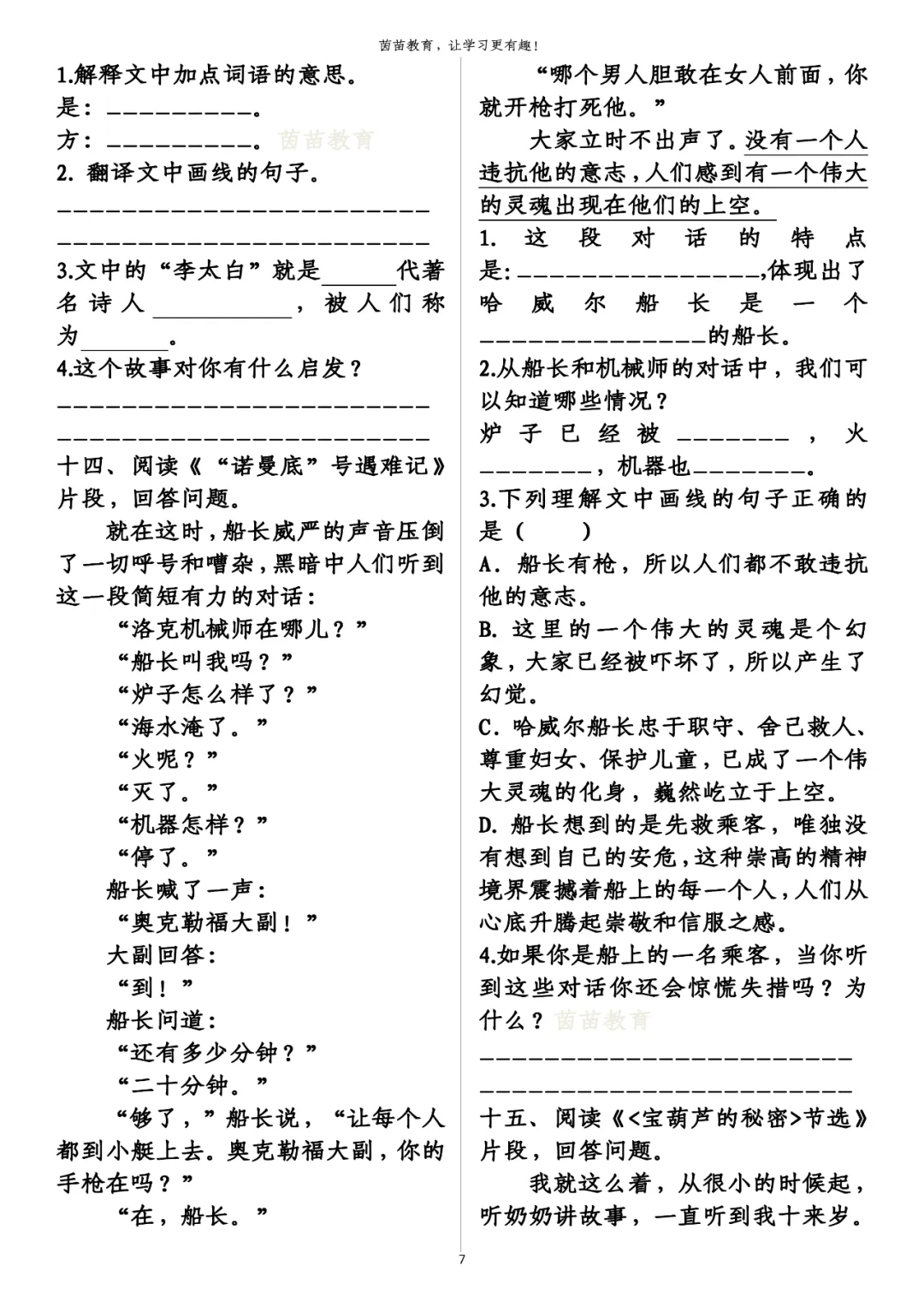 4.如果你是船上的一名乘客,当你听到这些对话你还会惊慌失措吗?为什么?