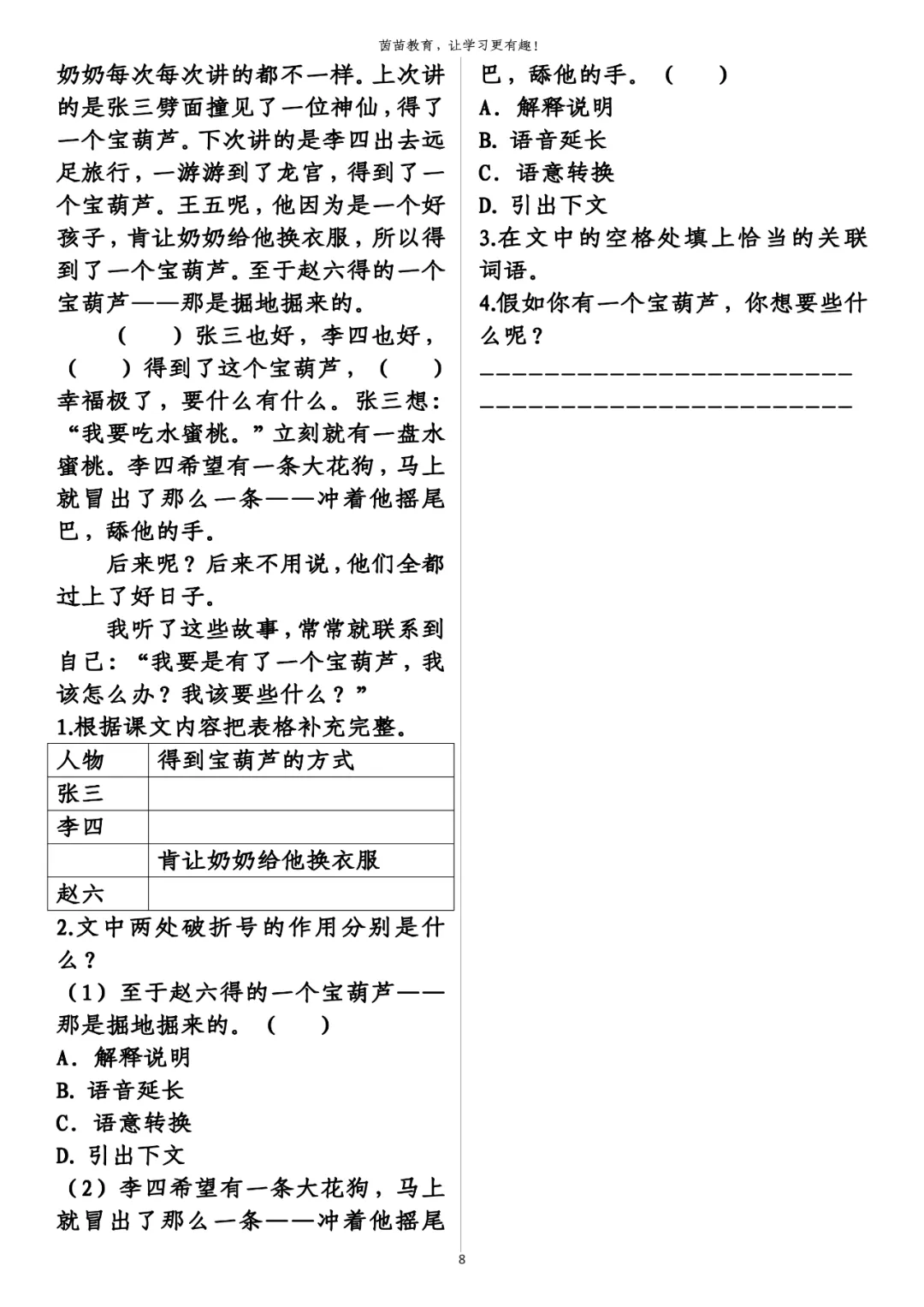 4.假如你有一个宝葫芦,你想要些什么呢?