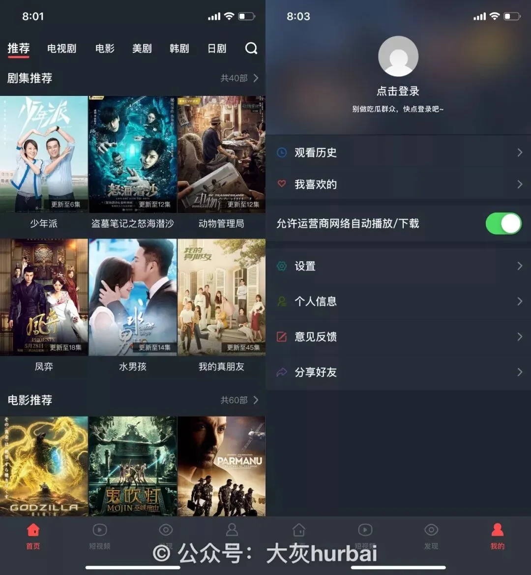 在 大灰hurbai 公众号回复影视获取大鱼视频APP的下载链接