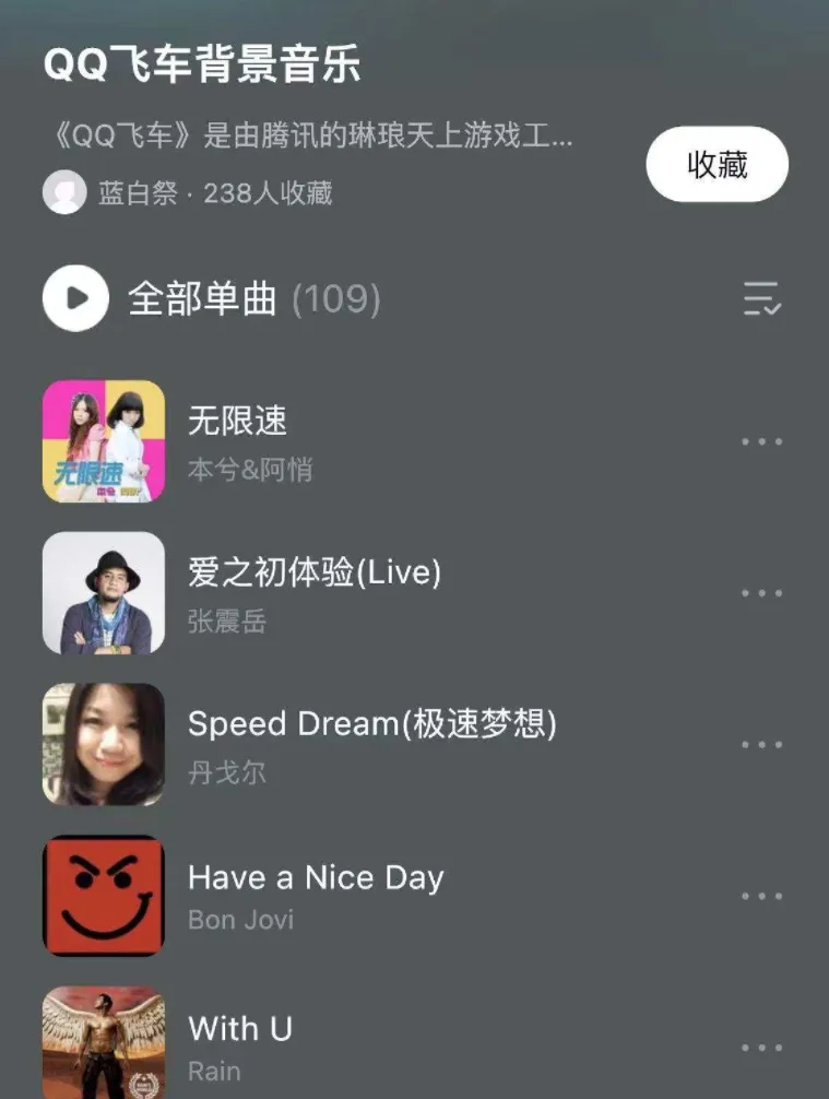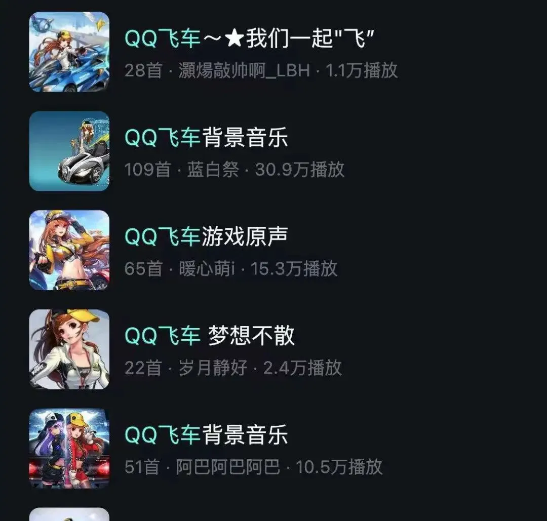 因为这些歌大部分都是具有时代感的经典,所以时至今日,在各大音乐 APP 上都有各种各样的 QQ 飞车歌单大全集。