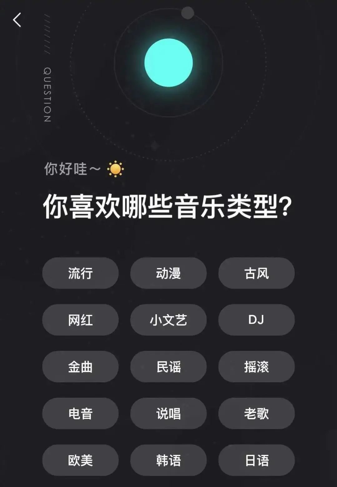 和其他 APP 不同,波点音乐直接把主页的听歌功能和智能算法推荐结合在了一起,打开 APP 后可以选择喜欢的音乐类型~