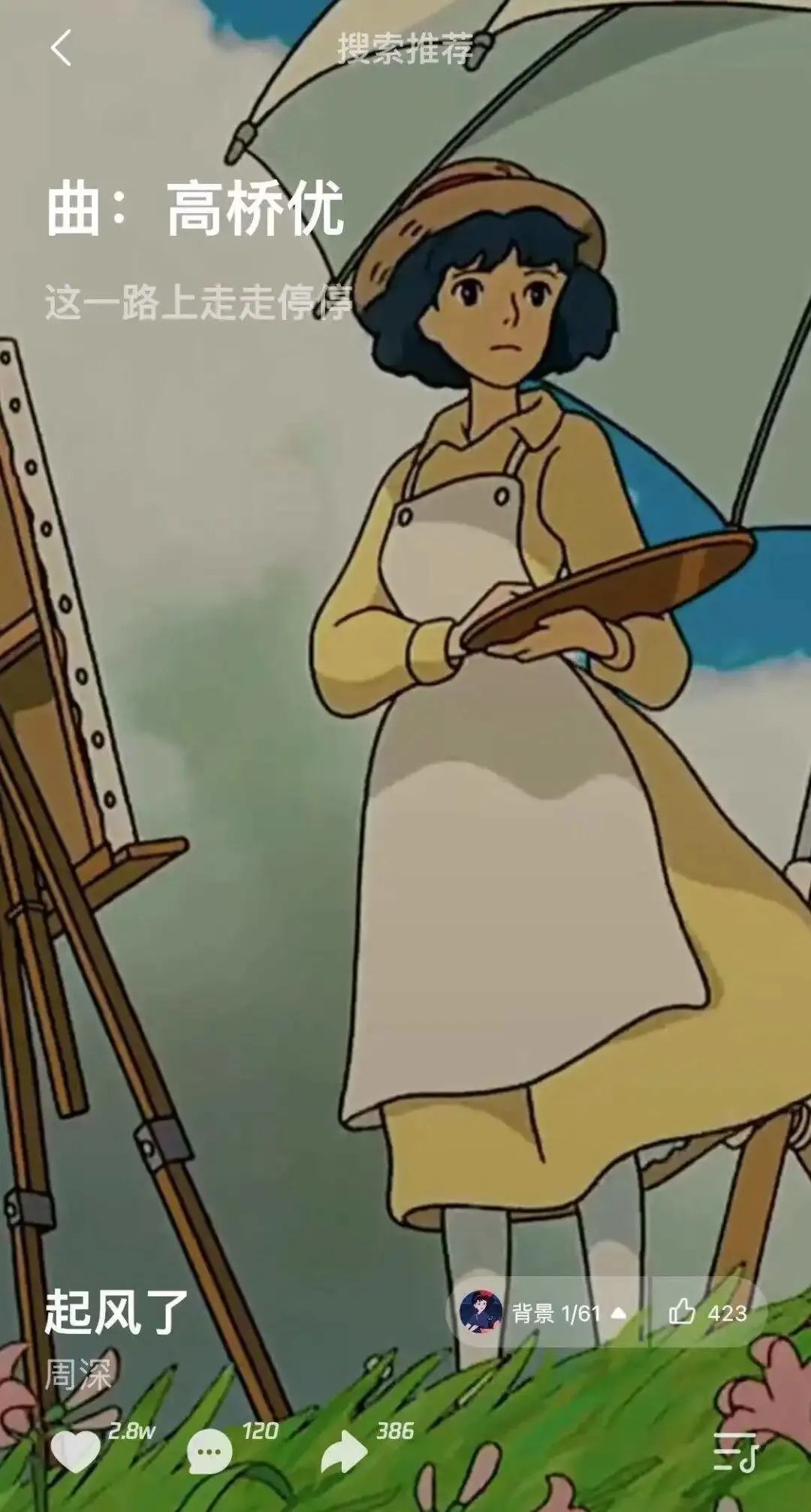 用户“我有声带”有次突然刷到自己在 KTV 经常唱的《 起风了 》,搭配上 宫崎骏 的动画,次元壁破了,但莫名很合适。