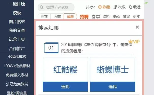 一、在135编辑器左侧的搜索栏中搜索样式ID:【94906】,或者搜索【答题】就可以找到三儿使用的答题样式啦!